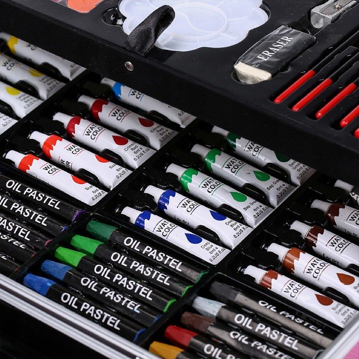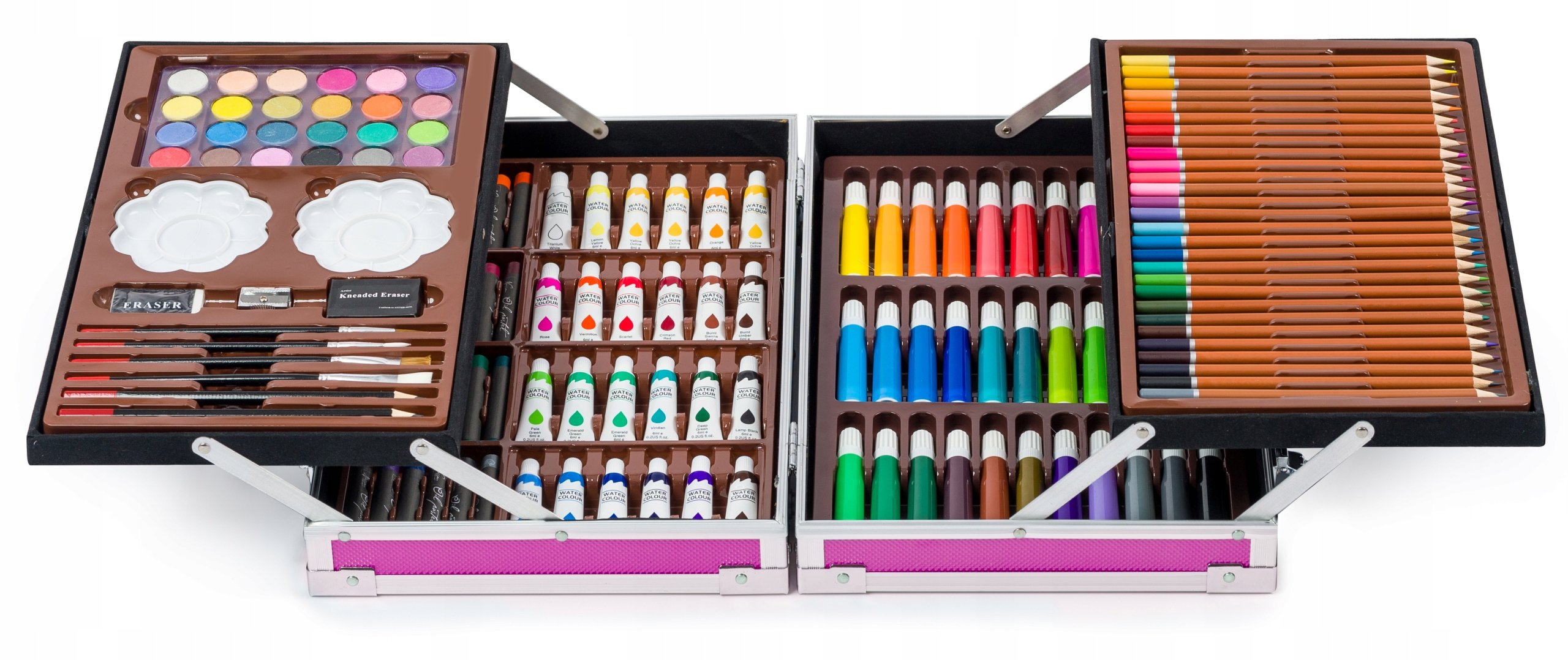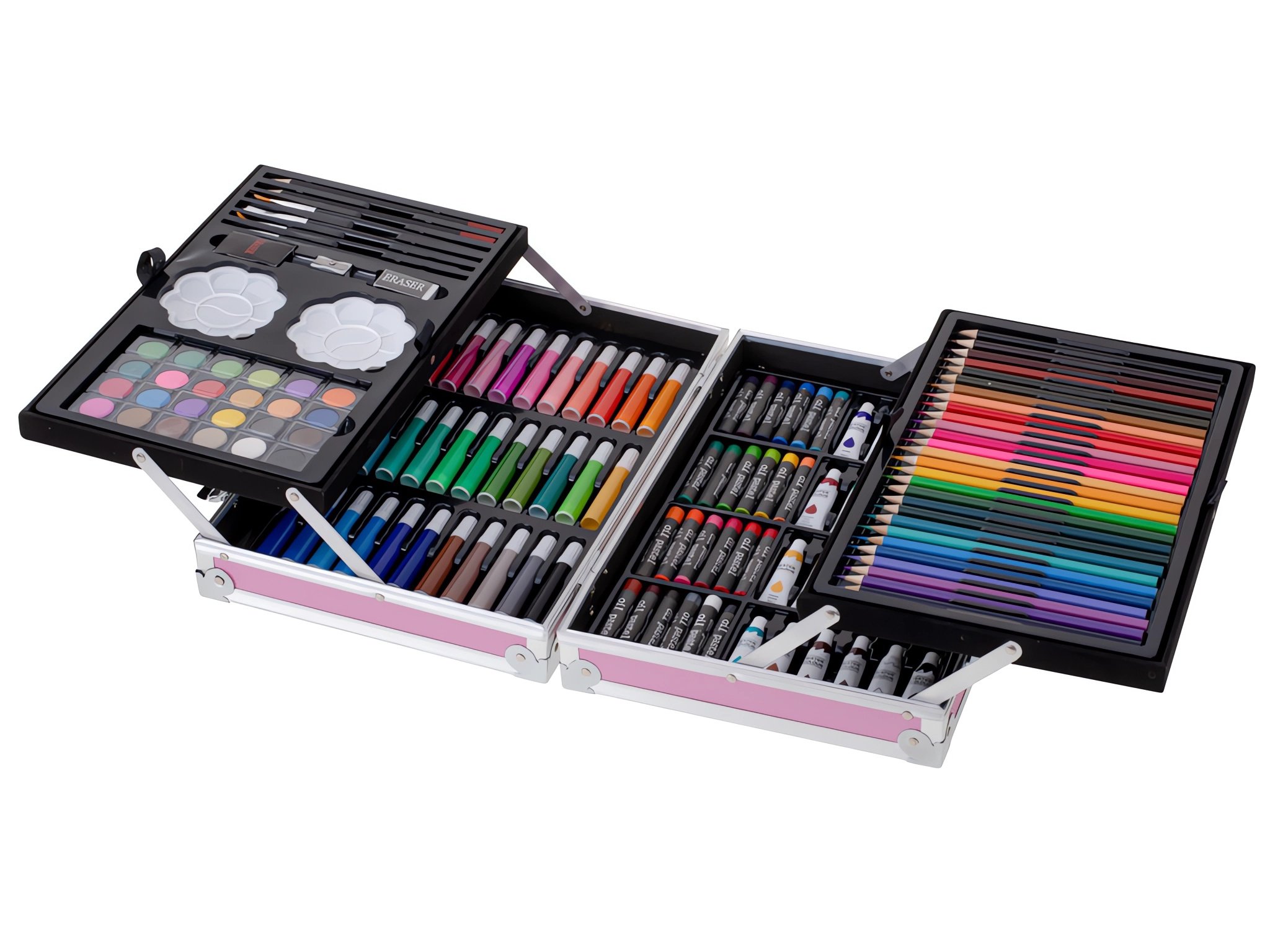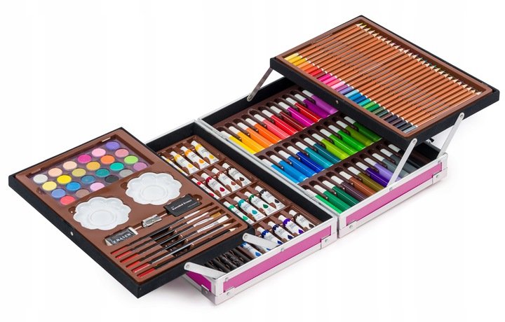Umělecká sada psacích potřeb skládající se z fantastických 145 prvků. Rozvíjení fantazie a výtvarných dovedností, sada pastelek, fixů, barev a pastelů.
