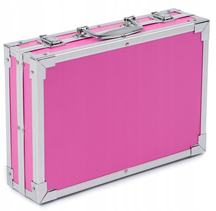 Vše je uzavřeno v pevném, skládacím hliníkovém kufru.