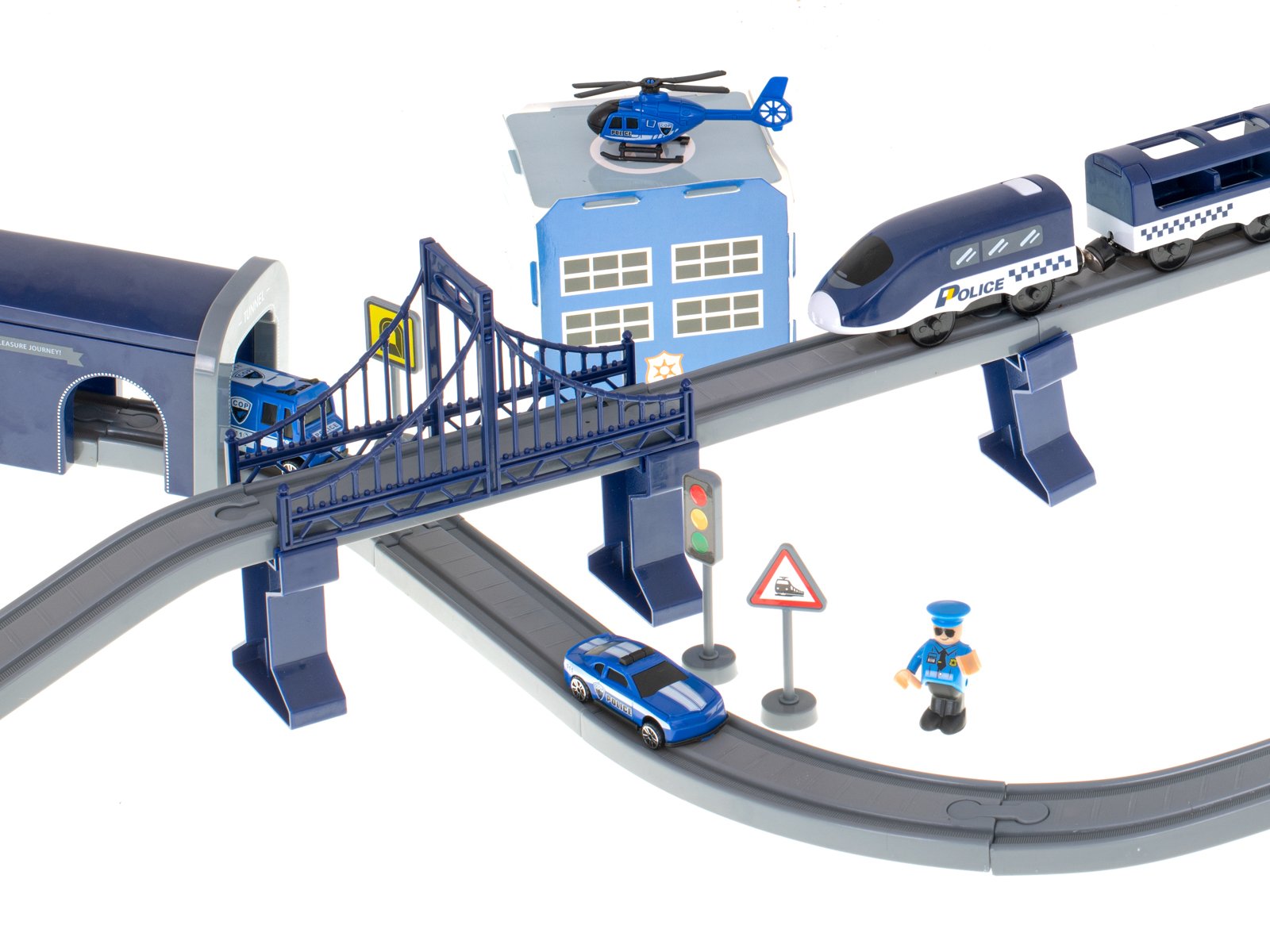 Sestavení dráhy stimuluje úchop a rozvíjí jemnou motoriku. Rozvíjí také fantazii. Všechny prvky dráhy a prostředí – policejní stanice, tunel a cedule – jsou samomontovatelné a lze je ozdobit samolepkami. Zábava začíná sestavením.