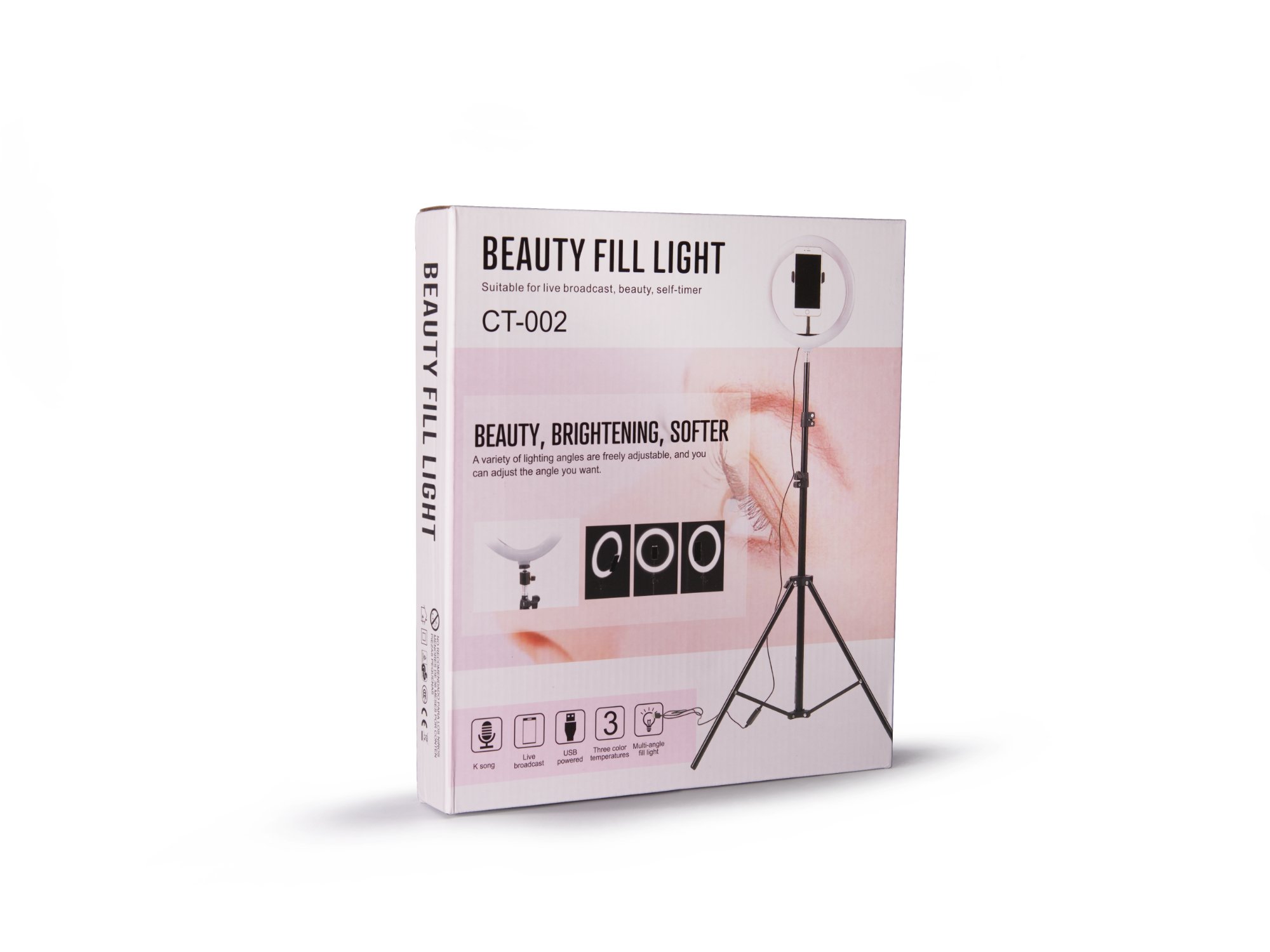 Moderní prstencový design lampy umožní rovnoměrné nasvícení obličeje nebo jiného předmětu.