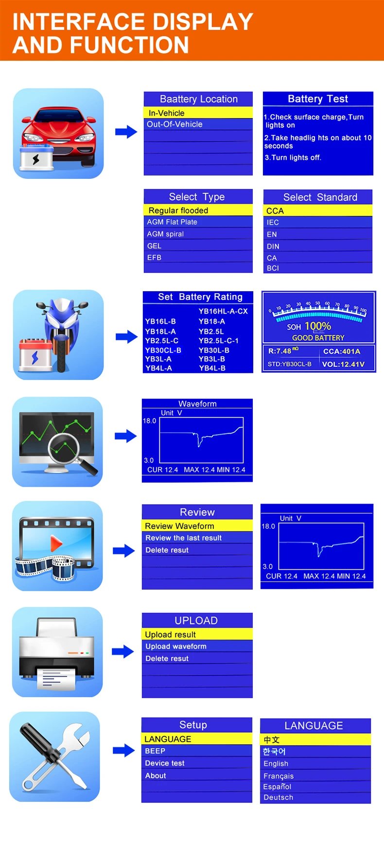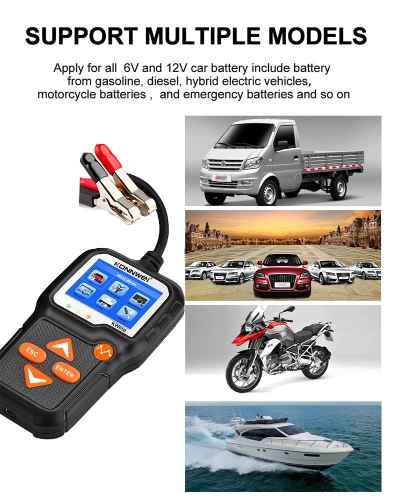Konnwei KW650 Měřič baterií 6 - 16 V, LCD