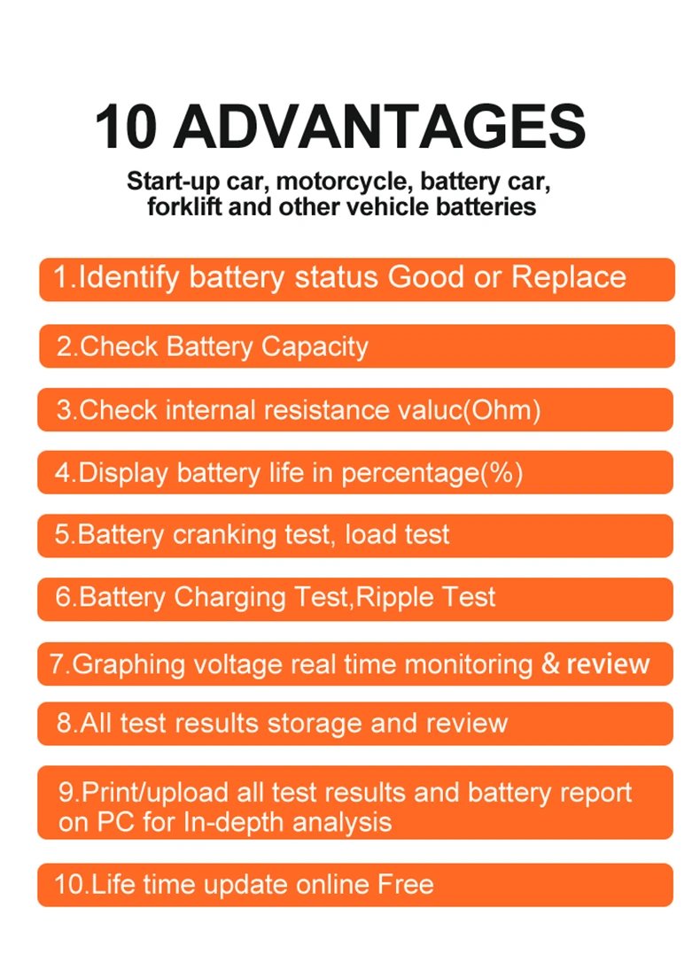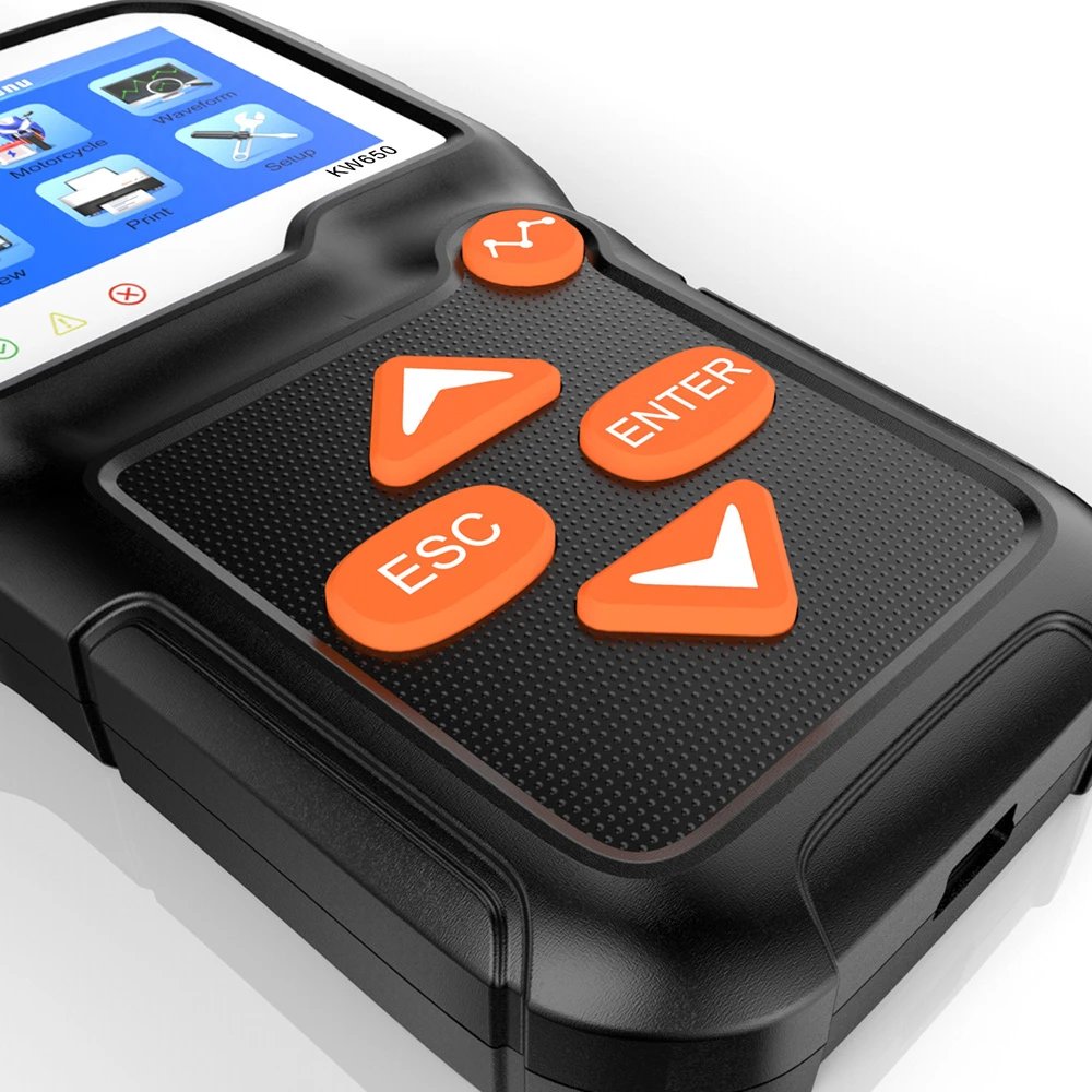 Konnwei KW650 je praktický měřič baterií určený ke kontrole akumulátorů v rozsahu napětí 6–16 V. Zařízení poskytuje přehled o klíčových hodnotách souvisejících s kondicí akumulátoru, a to prostřednictvím parametrů SOC, SOH a rezistance. Díky napájení přímo z připojeného akumulátoru není potřeba žádný samostatný zdroj energie.