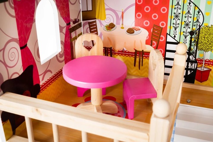 NEJVĚTŠÍ MODEL NA TRHU! - dům pro panenky je vysoký 90 cm! Je vyroben z masivního dřeva, jeho konstrukce se vyznačuje velkou odolností. Všechny prvky jsou pečlivě zpracované, dokonale broušené a bezpečné pro dítě. Dům je také velmi stabilní.