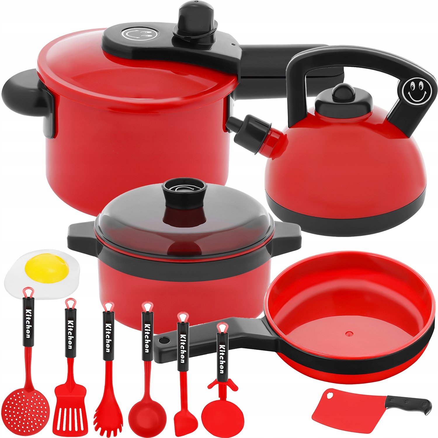 Tato extrémně praktická sada pro malé kuchaře obsahuje vše, co v kuchyni potřebujete k přípravě lahodných pokrmů pro celou rodinu! Obsahuje: hrnec, konvici, pánev a mnoho dalšího užitečného příslušenství. Hračky dokonale napodobují skutečné kuchyňské spotřebiče a náčiní. Jak víme, děti napodobují své rodiče, musíte vědět, že jim to umožňuje hrát si spolu. Dítě může připravovat večeři ve stejnou dobu jako jeho opatrovník. Sada byla vytvořena v moderním stylu. Kombinuje dvě klasické barvy: černou a intenzivní, stylovou červenou, která mu dodává charakter.