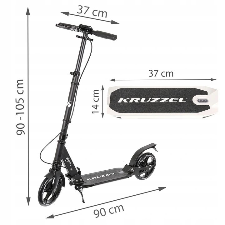 Kruzzel 23550 Skládací koloběžka, odpružená, s ruční brzdou, černá