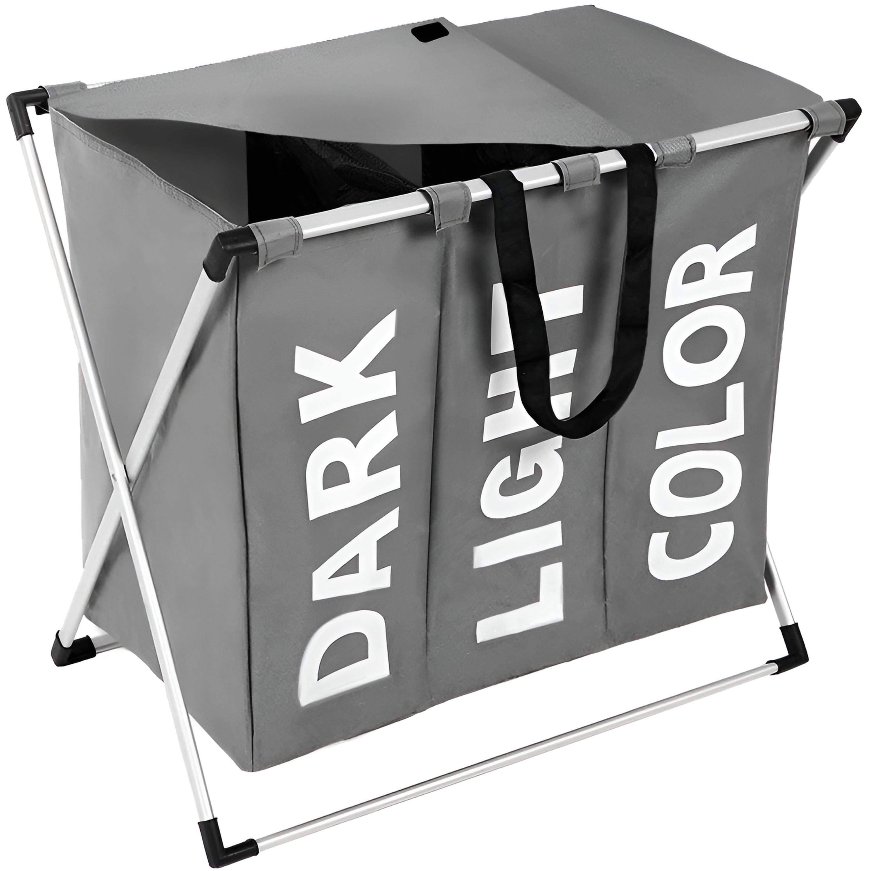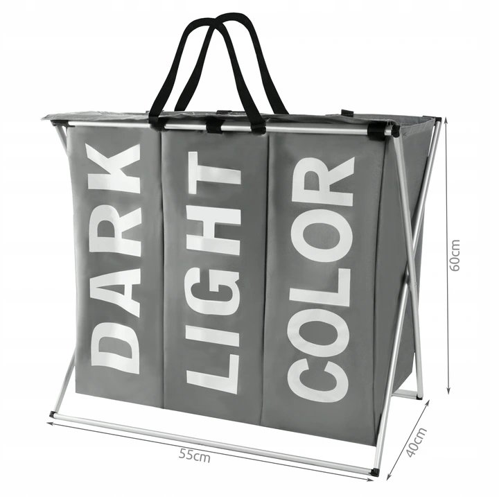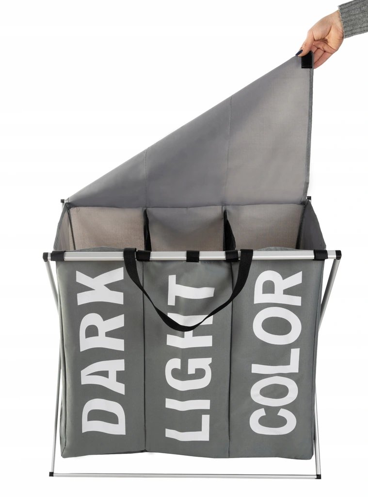 Tříkomorový koš na prádlo "Trio" byl vyroben z odolného materiálu na lehkém hliníkovém rámu.Rozdělení do 3 komor vám umožní rychle a efektivně třídit znečištěné oblečení do různých typů prádla, čímž ušetříte čas.Je vybaven pohodlnými držadly a třemi manžetami, které každou komoru uzavírají samostatně.Velká kapacita umožňuje přizpůsobit se mnoha oděvům, které se převedou do pořádku u vás doma.