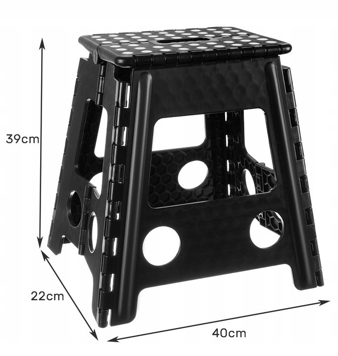 Plně skládací stolička, velmi snadná na přepravu a skladování. Výrobek je vybaven protiskluzovou vrstvou, díky které je použití bezpečnější. Plošinu využijete k dosažení vysoké police, natírání stropu při renovaci, zavěšení lustru nebo zavěšení závěsů. Výrobek je také perfektní jako platforma pro děti - například k dosažení umyvadla.