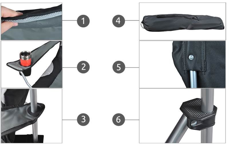 Díky skládací konstrukci lze křeslo snadno složit a uložit do přepravního obalu, což usnadňuje přenášení i skladování. Nízká hmotnost a kompaktní rozměry po složení umožňují pohodlné použití při rybaření, kempování, na pláži, zahradě nebo na pikniku.