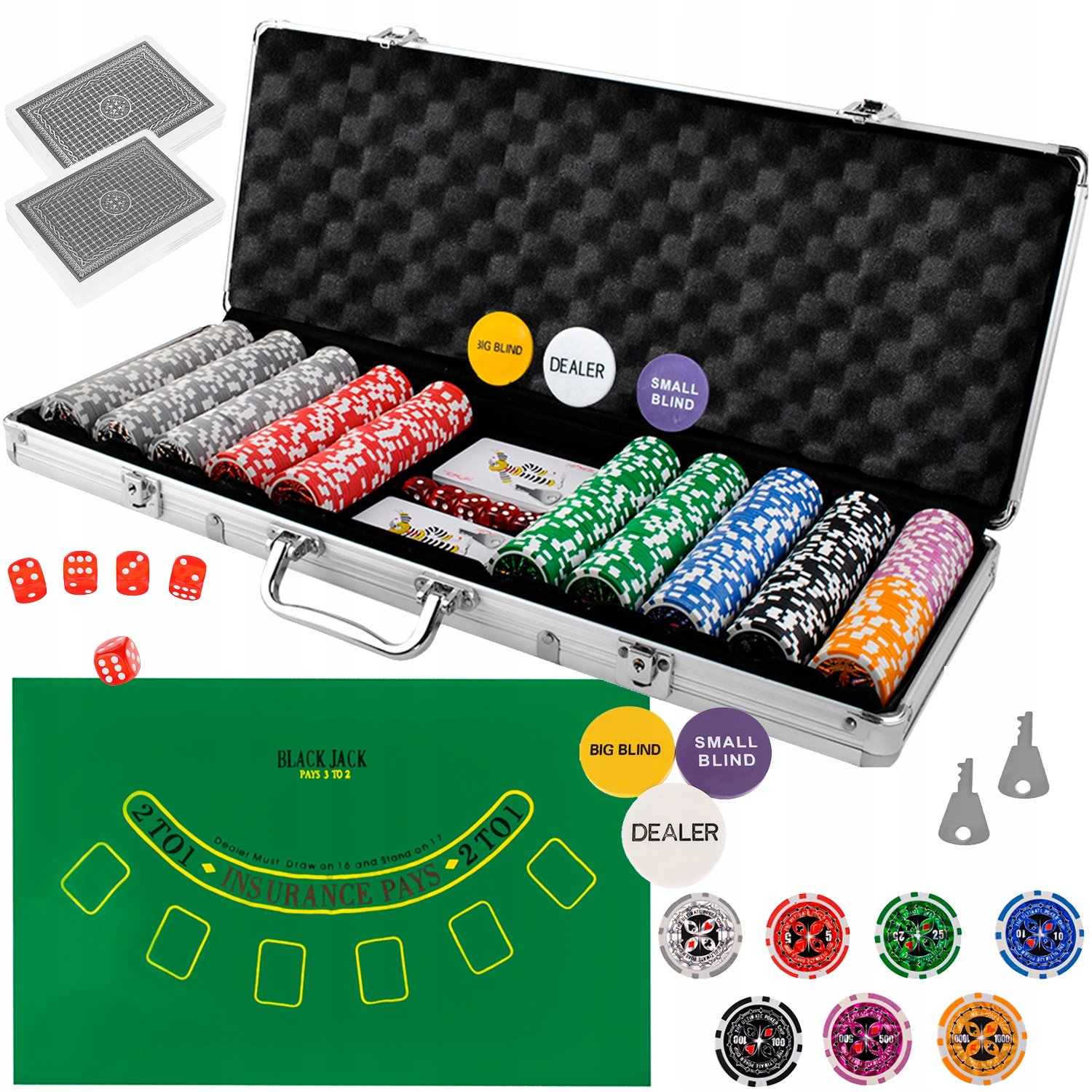 Fantastická kompletní sada pro hraní Texas hold'em pokeru a dalších karetních her.