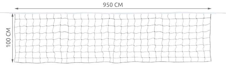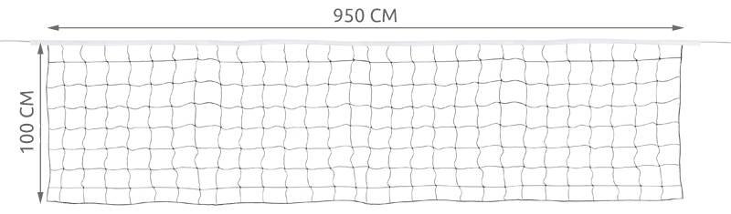 Volejbalová síť je vyrobena z umělého vlákna. Má délku 9,5 m a šířku 1 m. Oka jsou o velikosti 11 x 11 cm.
