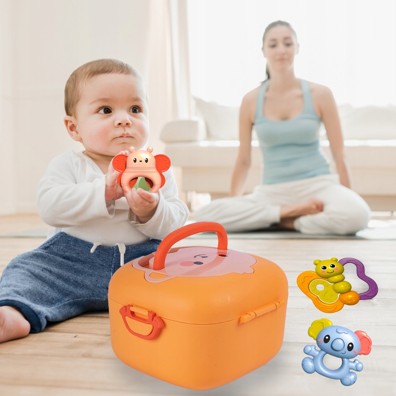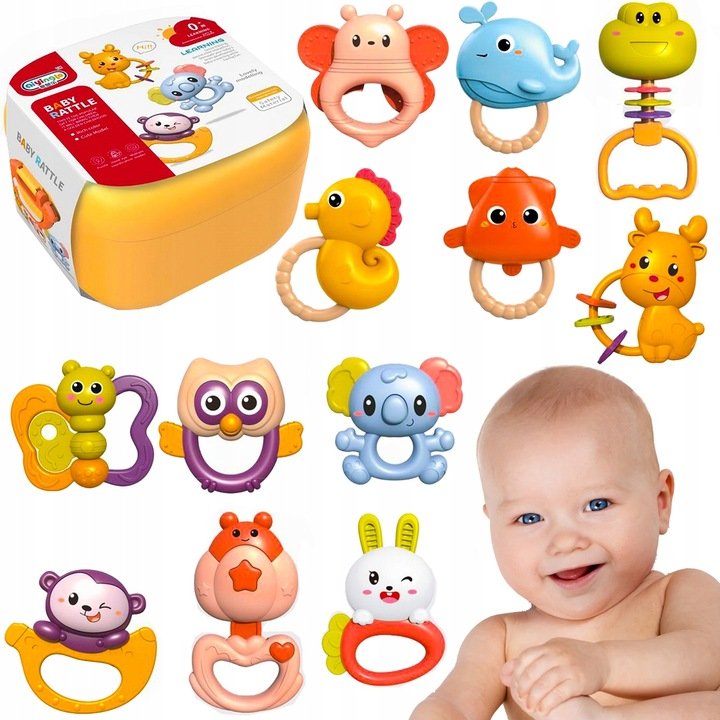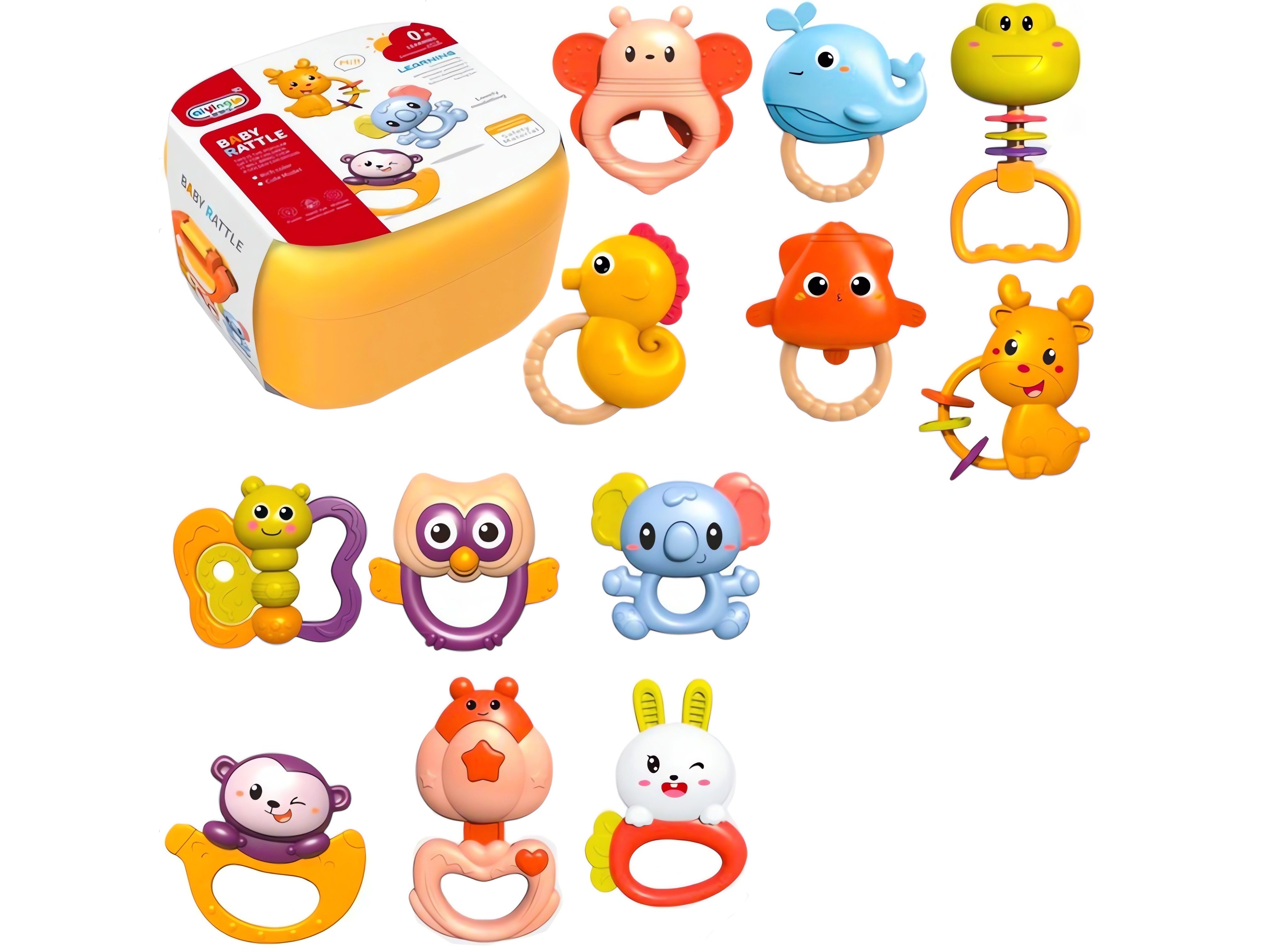 MalPlay Sada chrastítek a kousátek pro miminka, 12 ks v kufříku