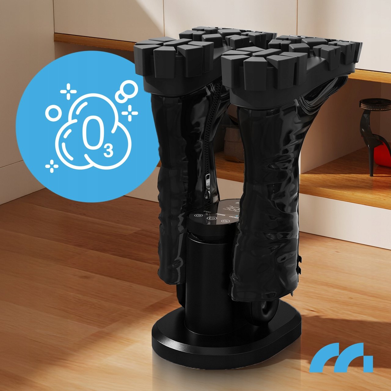 Ozon je silný dezinfekční prostředek používaný mimo jiné v lékařství, potravinářském průmyslu a úpravě vody. VYsoušeč generuje omezené množství ozonu v přijatelných mezích a plyn se během několika minut rozkládá zpět na kyslík. To umožňuje zařízení neutralizovat nepříjemné pachy a omezit růst bakterií. Po dokončení cyklu se ozon nezadržuje v botách ani v místnosti. Režim O3 pracuje 5 minut a poté se automaticky vypne. Lze jej zapínat a vypínat nezávisle na sušicím cyklu.
