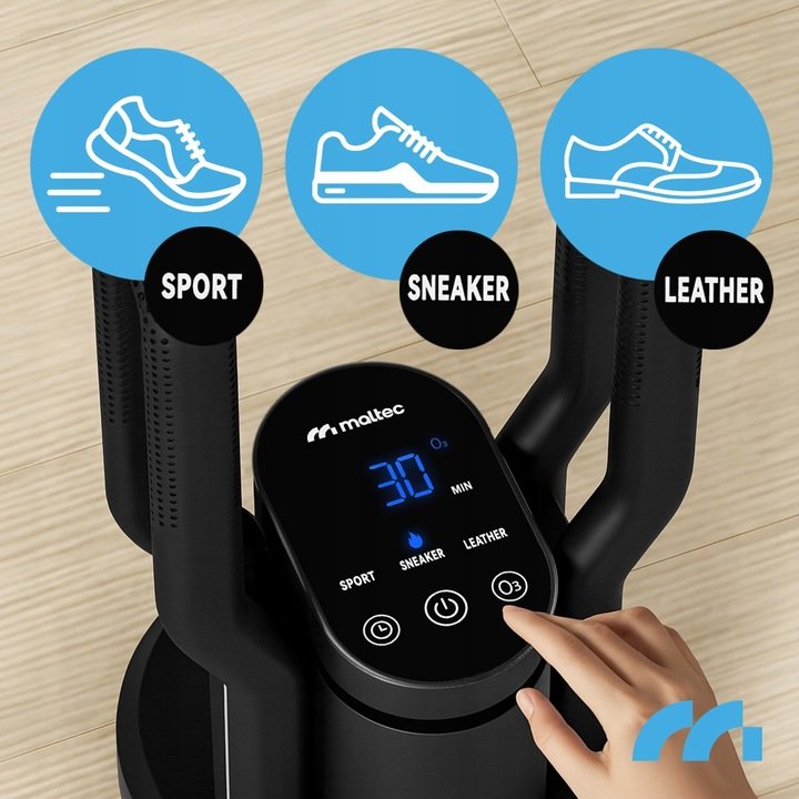 Elektrický vysoušeč obuvi MalTec s ozonem o výkonu 200 W je určen výhradně k vysoušení a dezinfekci obuvi. Při jeho používání je nutné dbát na bezpečnostní zásady, protože zařízení pracuje s elektrickým napětím, teplem a ozonem. Vždy jej zapojujte pouze do správně uzemněné zásuvky a nikdy s mokrýma rukama ani s poškozeným kabelem. Přístroj se při provozu zahřívá, proto by neměl být položen na hořlavé povrchy ani zakrytý, aby nedošlo k přehřátí.