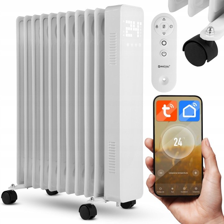 MalTec Olejový radiátor s WiFi, ProOil 2500 W, 11 žeber, bílý