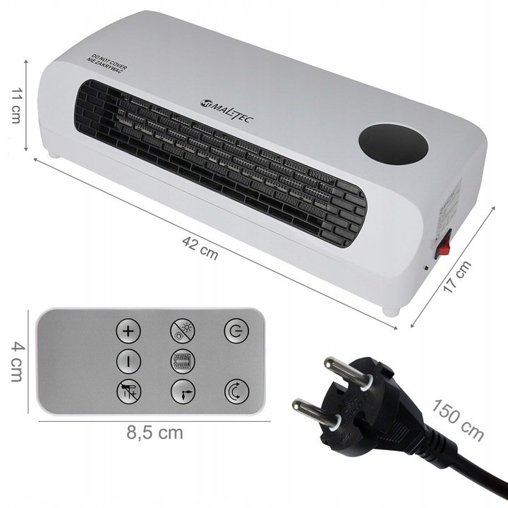 MalTec PT3800Wt Nástěnný teplovzdušný ventilátor, 2000 W, bílá