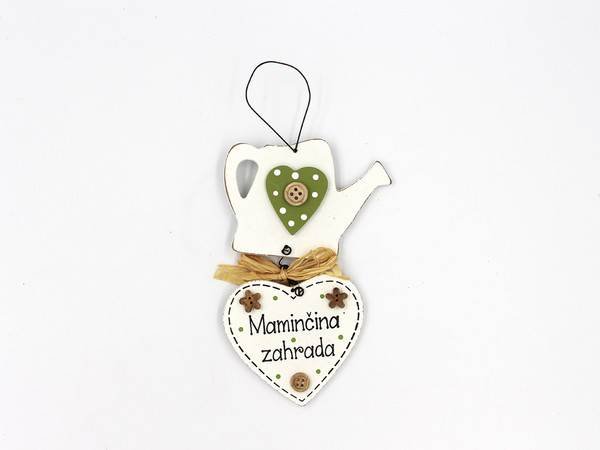 Malá dřevěná cedulka s textem „Maminčina zahrada“ potěší každou maminku. Dekoraci ve tvaru konvičky a...