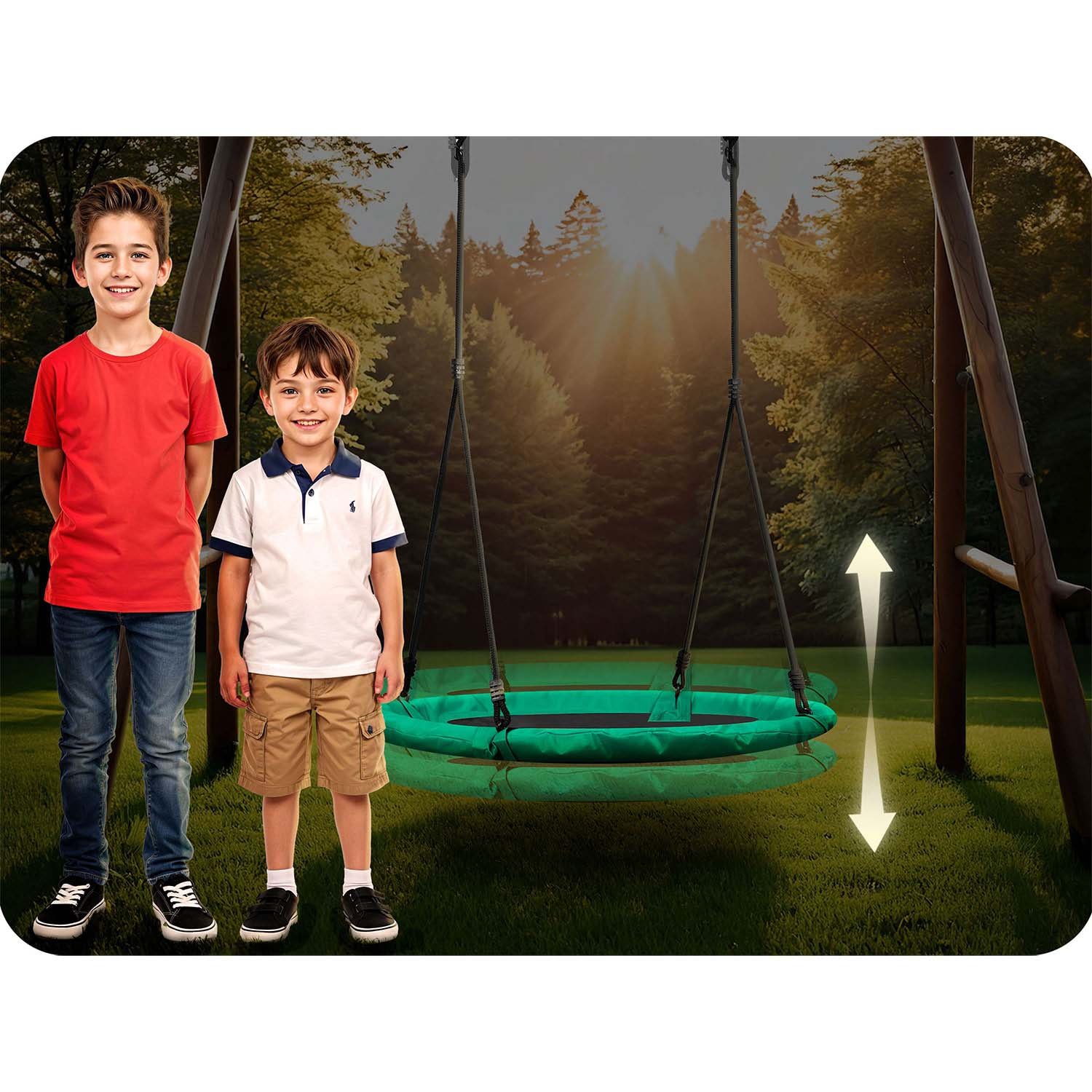 SWINGO nabízí solidní uchycení s možností regulace – výšku snadno přizpůsobíte postavě dítěte. Šířka hnízda a látkové obšití zvyšují pohodlí při houpání a dělají z houpačky oblíbené místo odpočinku i her.