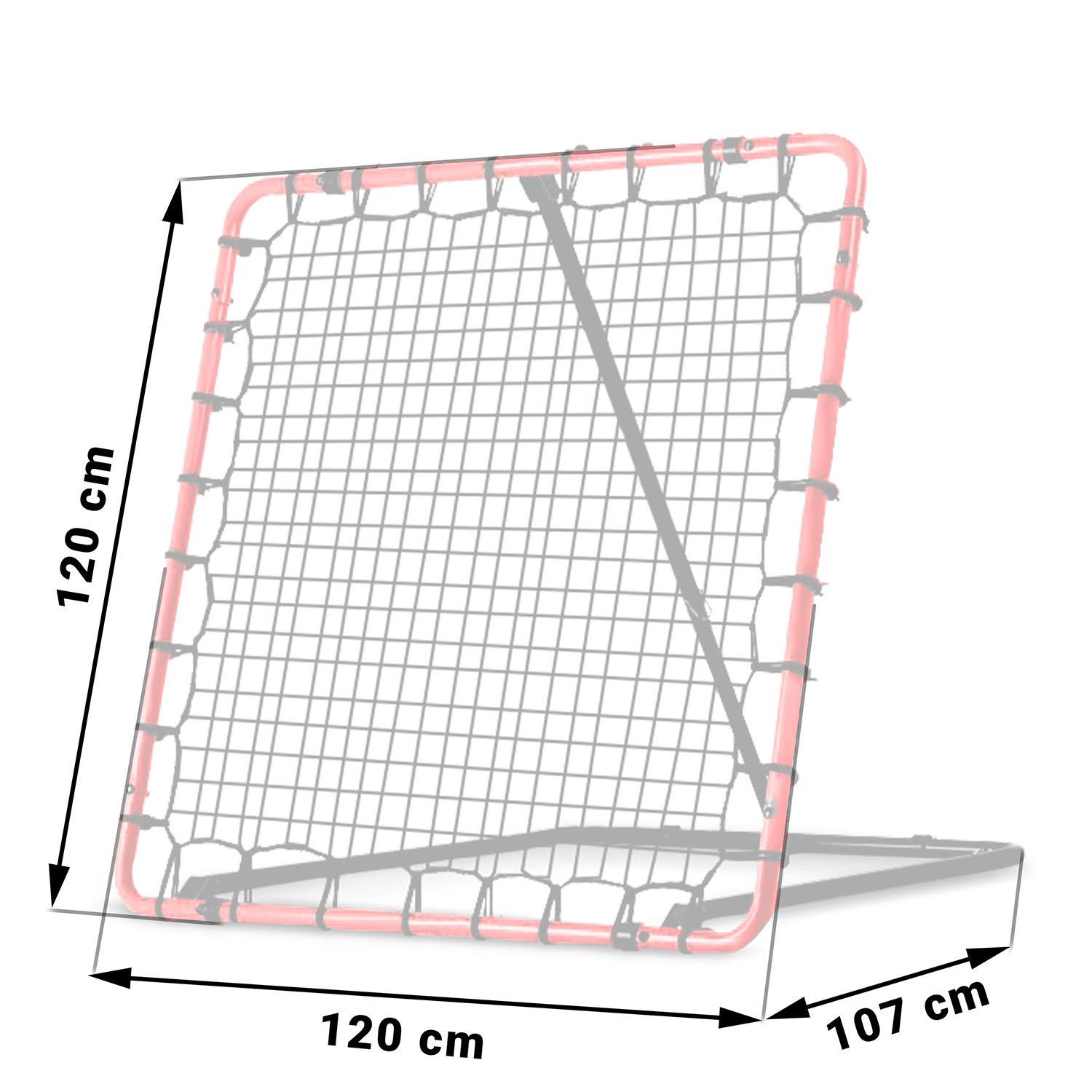 Rebounder o rozměrech 120 × 120 × 107 cm má pevný ocelový rám. Silné ocelové sloupky zajišťují stabilitu a odolnost vůči povětrnostním vlivům. Síť je vyrobena z odolného PE (polyethylenu), který dlouhodobě snáší opakované zatížení při odrazech míče. Samotná konstrukce je lehká, takže ji v případě potřeby snadno přenesete na jiné místo.