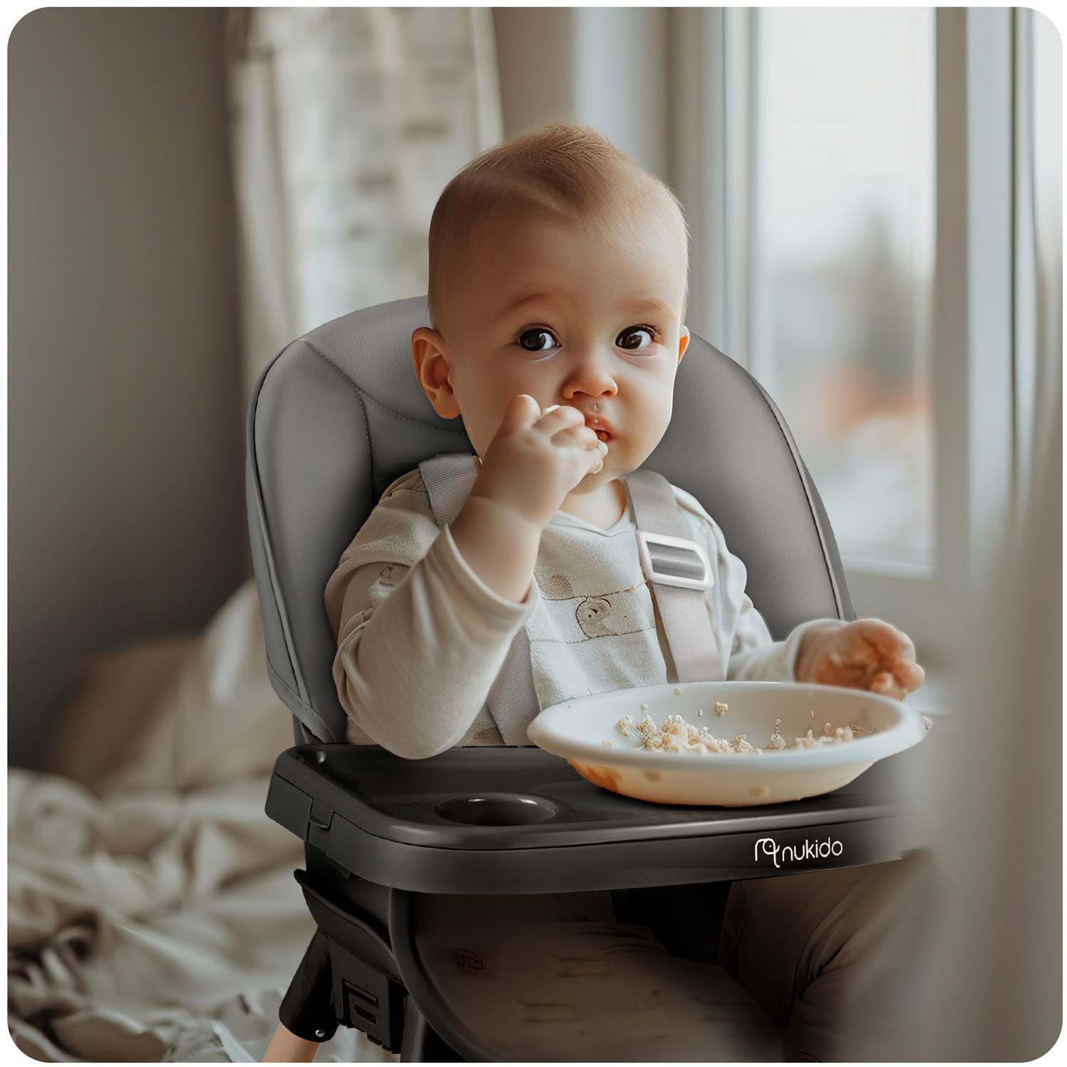 Nukido TILO je jídelní židlička navržená pro pohodlné krmení i každodenní aktivity dítěte. Díky stabilní konstrukci a pečlivému tvarování podporuje správné držení těla při jídle i při hraní. Široká využitelnost dělá z TILO ideální místo pro kreslení, malování, stavění kostek nebo první pokusy o čtení – praktická tacka vytváří bezpečný a komfortní prostor pro knížky i pomůcky.