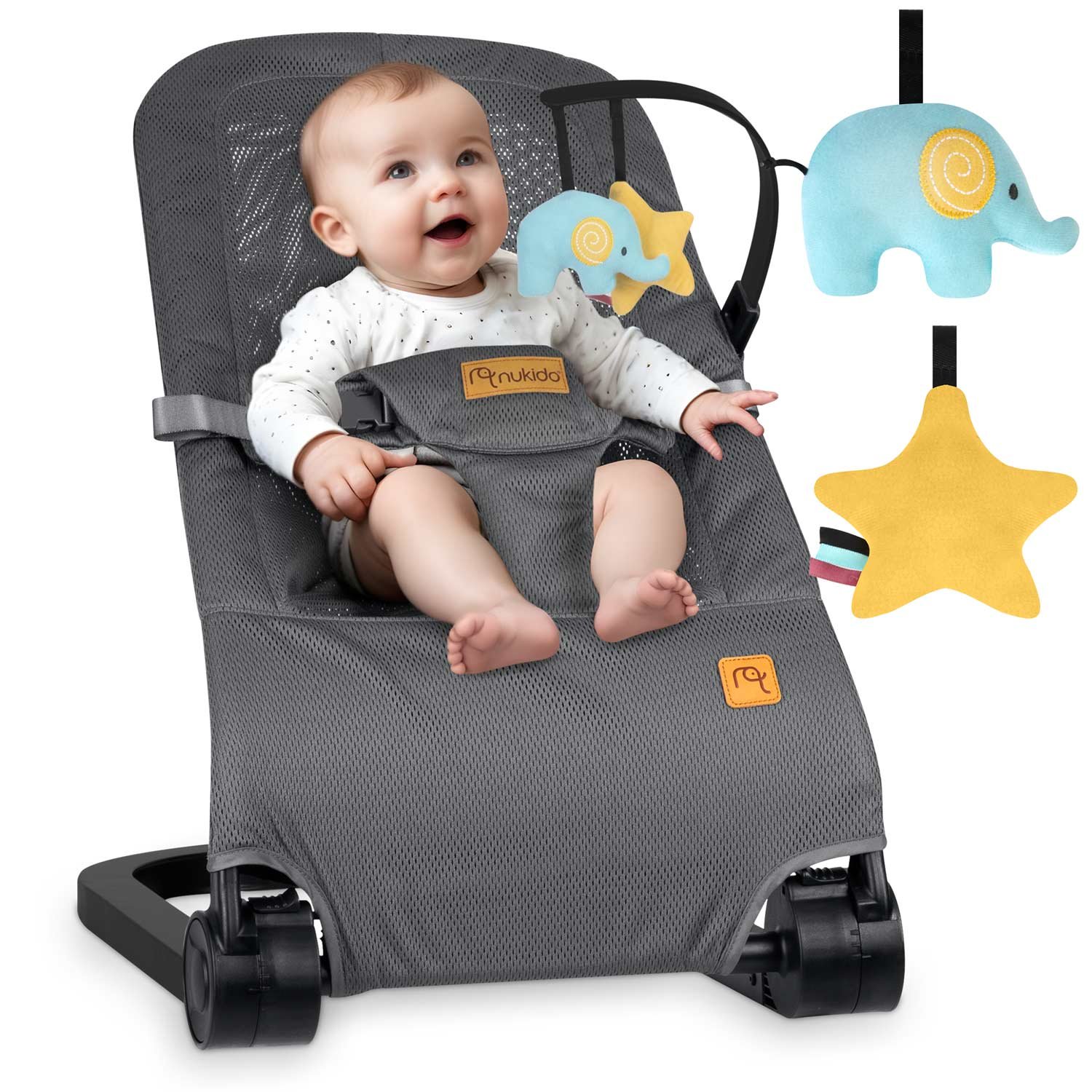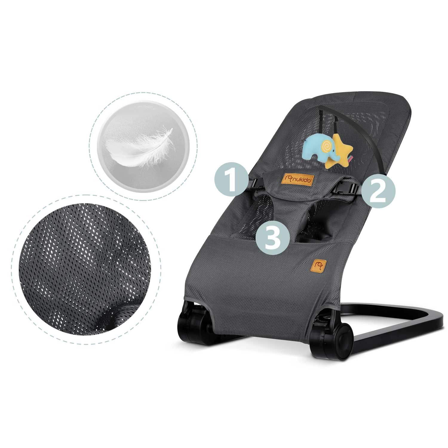 Nukido NK-52 Houpací křeslo s hračkami, šedé