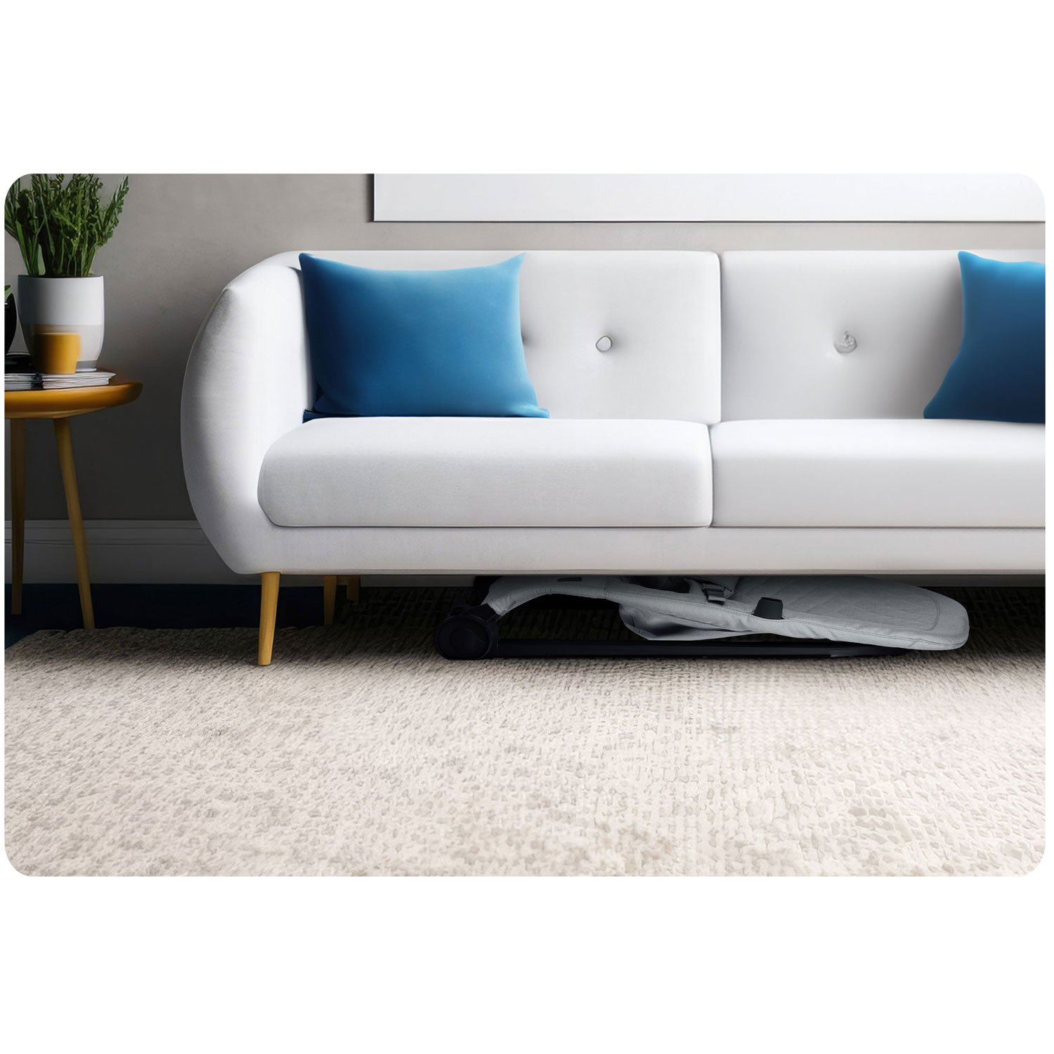 Díky kompaktním rozměrům základny 45,5 × 72 cm se lehátko vejde i do menších interiérů. Maximální zatížení při houpání je do 9 kg, takže pokryje období prvních měsíců aktivního vývoje dítěte, kdy může být vždy nablízku běžnému domácímu dění.