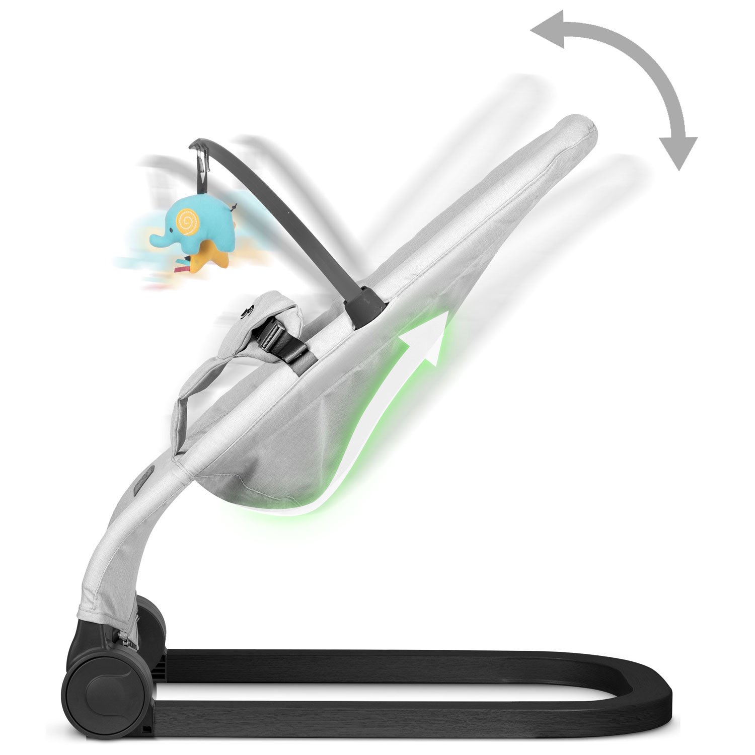 Odnímatelný oblouk s barevnými, měkkými hračkami je umístěn v optimální výšce a úhlu. Podporuje zaostření zraku, rozvoj koordinace ruka–oko, motivuje k pohybu a kognitivnímu objevování tvarů, barev a textur. Hračky jsou uchyceny suchým zipem, takže je lze snadno přemístit či vyměnit; na oblouk můžete zavěsit i další oblíbené drobné hračky dítěte.