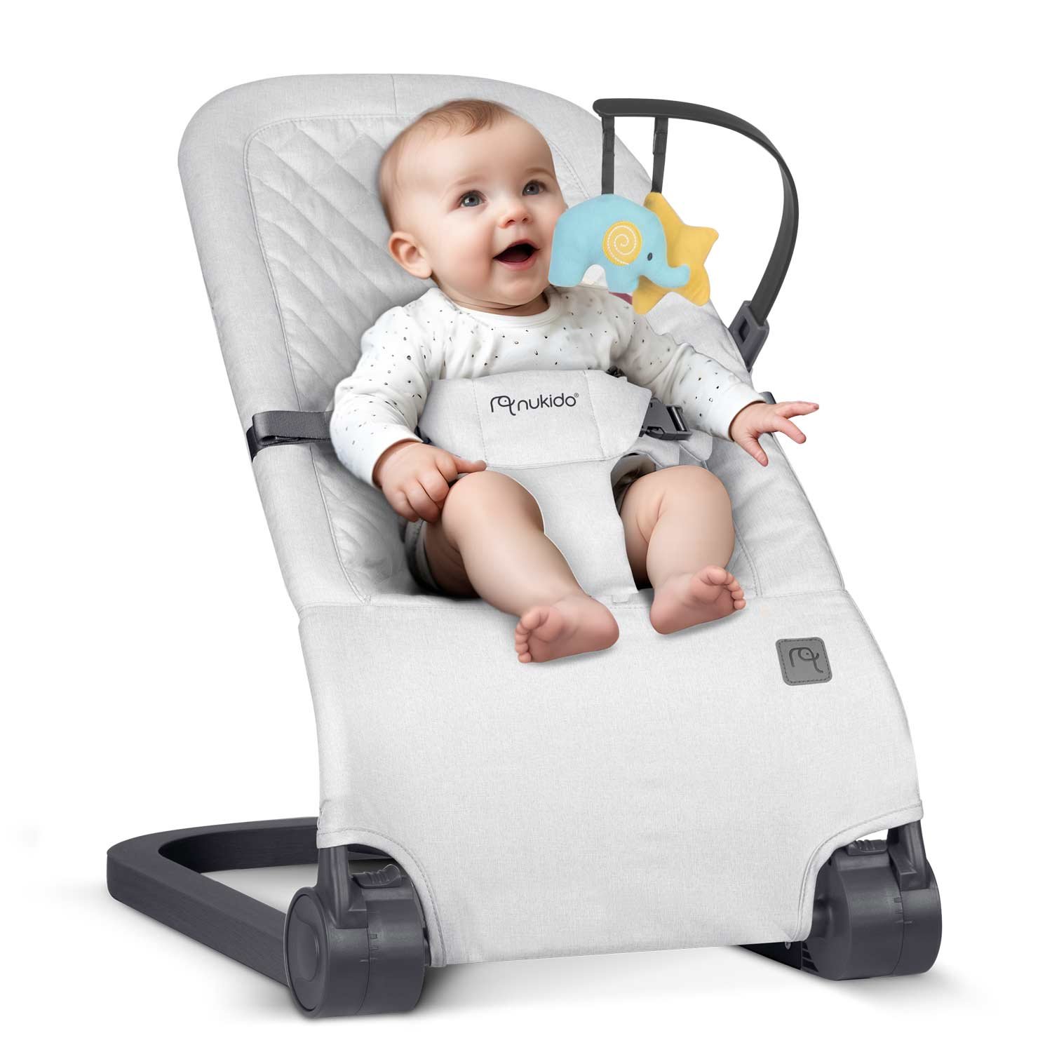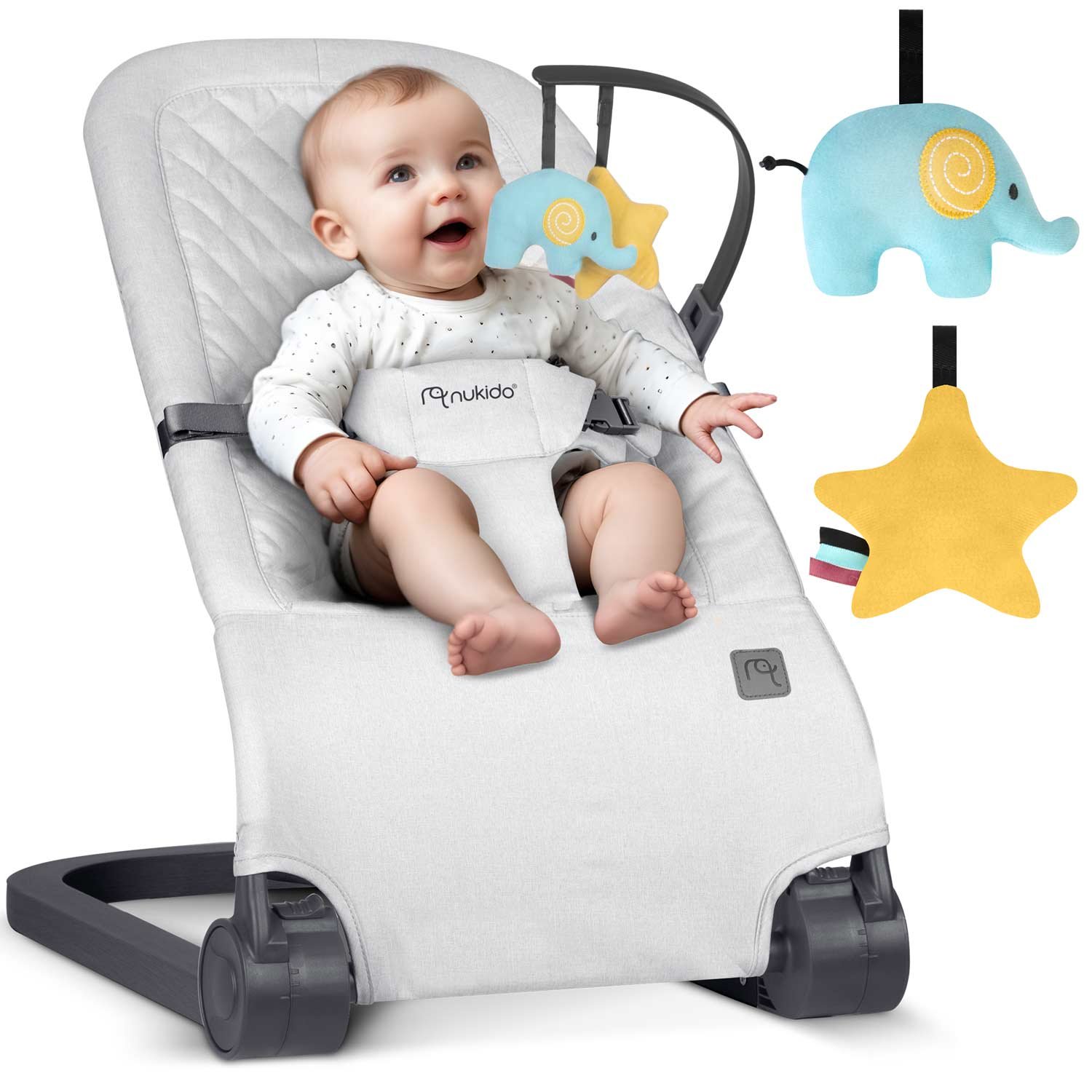 Nukido NK-52 houpací křeslo s hračkami, světle šedé