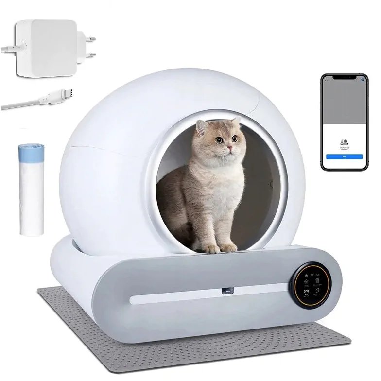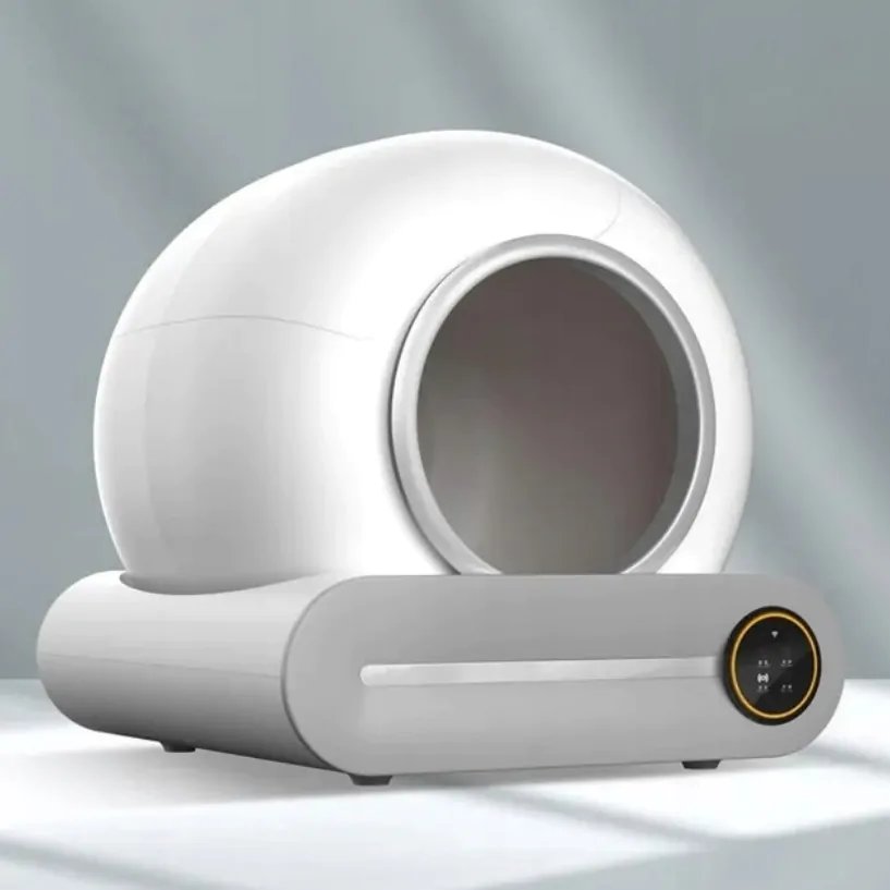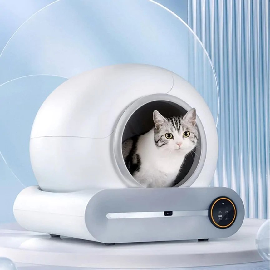 Chytrá toaleta určená pro kočky vybavená funkcí automatického čištění.