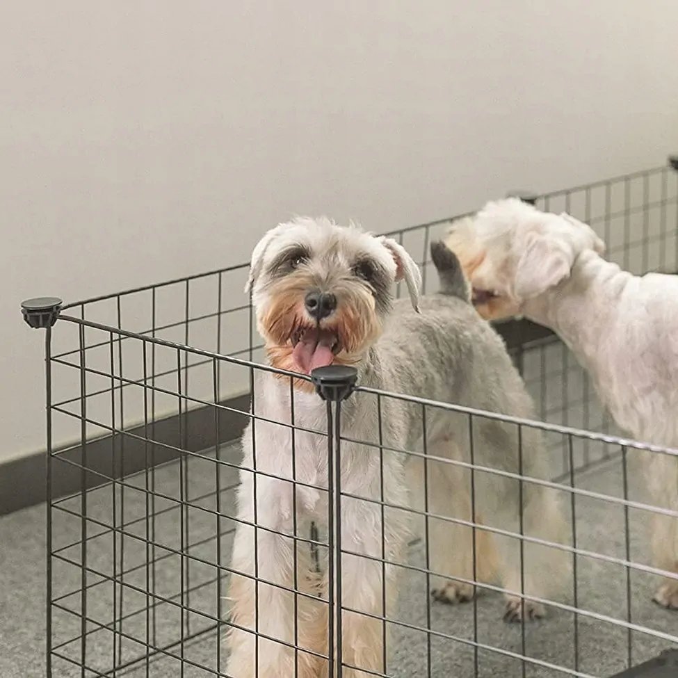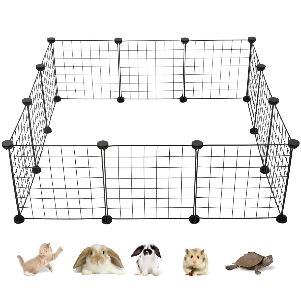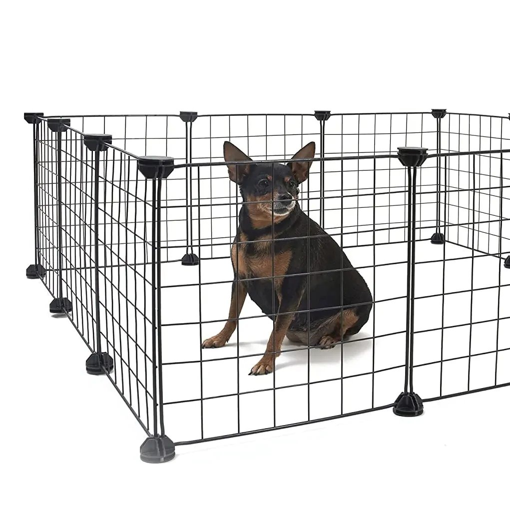 Modulární ohrádka pro zvířata, k sestavení svépomocí. Zajistí bezpečnost pro králíky, morčata, kočky, psy a další malá zvířata. Konstrukce je vyrobena z odolné oceli a plastu. Díky samostatným prvkům si můžete ohrádku postavit na jakýkoli tvar v závislosti na vašich potřebách. Skládá se z dvanácti jednotlivých prvků, které jsou spojeny pomocí spojek. Ohrada je vhodná pro použití ve všech podmínkách, doma i na zahradě.