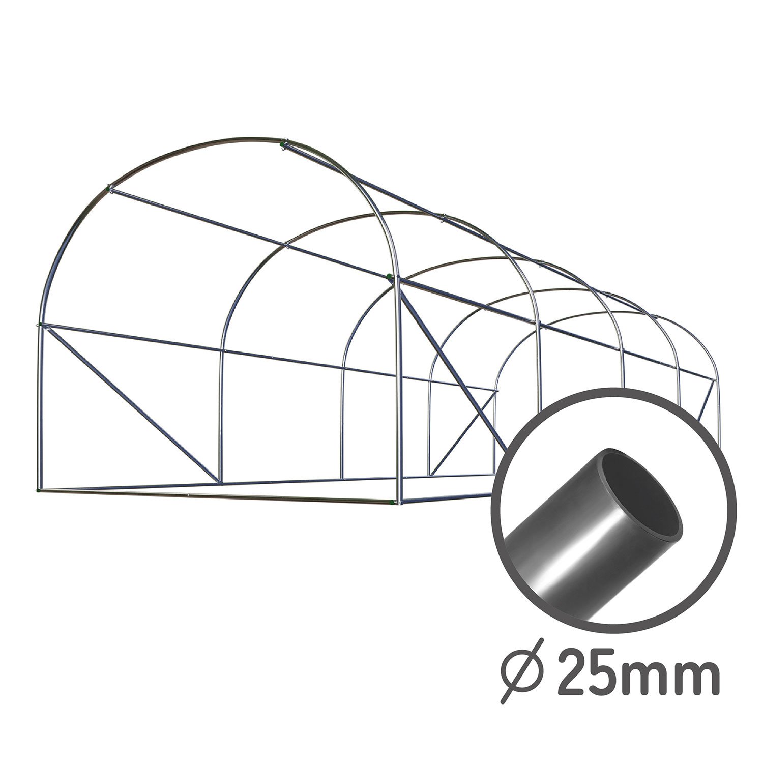 Fóliovník Plonos o ploše 9 m² je praktické řešení pro pěstování na zahradě. Díky využití nejnovějších technologií a kvalitním materiálům je navržen tak, aby rostlinám poskytl ochranu a vhodné podmínky po mnoho sezón. Konstrukce z oboustranně pozinkovaných ocelových profilů o průměru 19 mm je doplněna dvojitými profily v horní části, které zvyšují stabilitu celého tunelu. Zelené PE foliové poszytí o gramáži 140 g/m² (UV4 proof) má nízký koeficient odrazu a vysokou propustnost světla, což prospívá růstu i raným odrůdám zeleniny v chladnějších nebo zatažených obdobích.