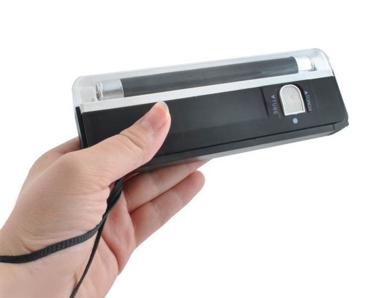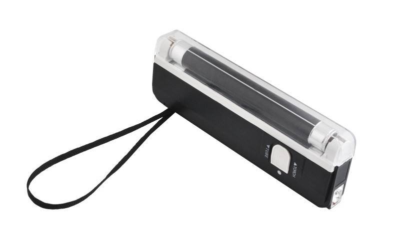 Praktická baterka sbílou svítivou diodou (LED) a zářivka svítící ultrafialově. Vhodná na zkoušení pravosti bankovek a dokumentů (které mají značky viditelné vUV záření). Bezdrátová zkoušečka – můžete si ji vzít ssebou všude!