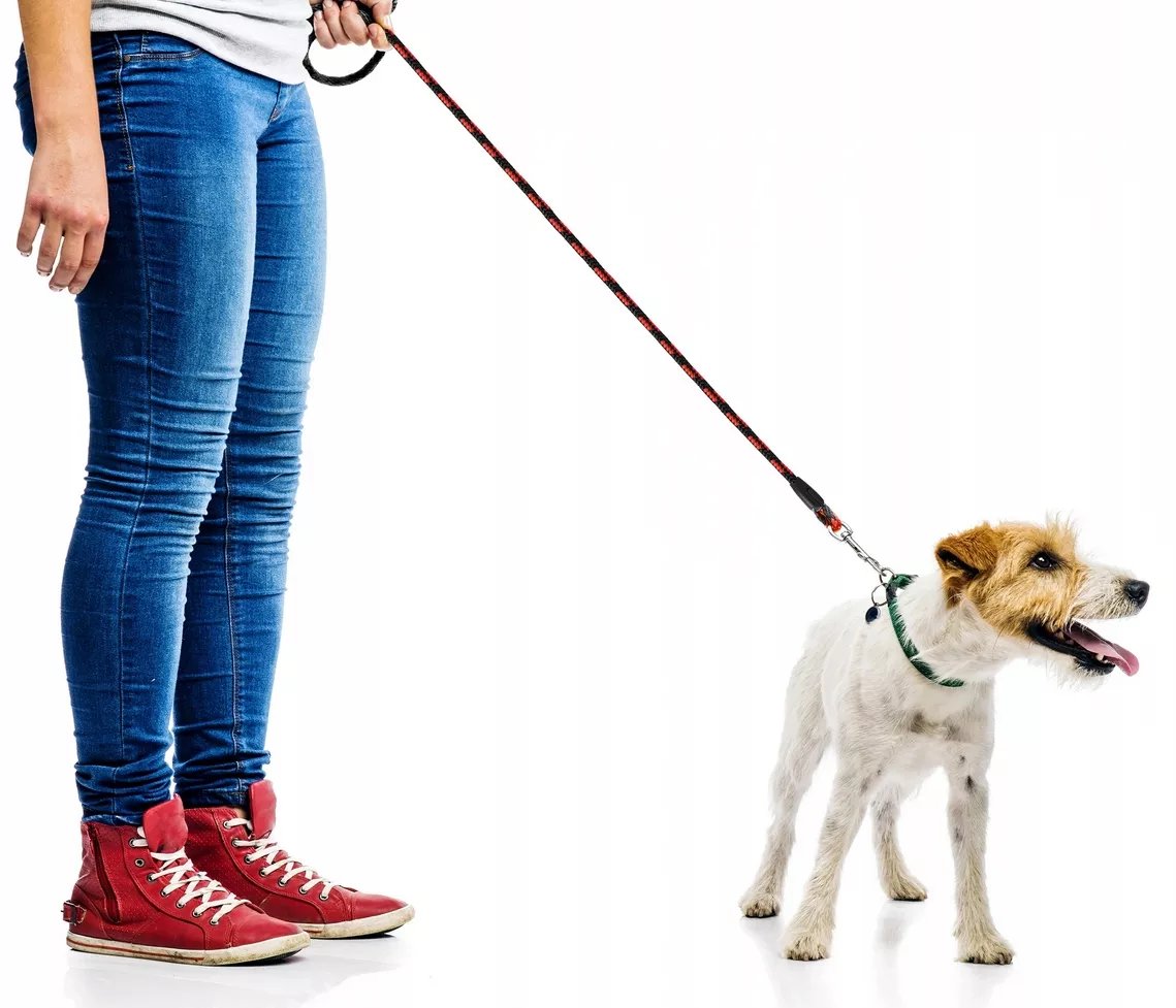 Kulaté lanové vodítko, které se komfortně drží v ruce a je měkké.