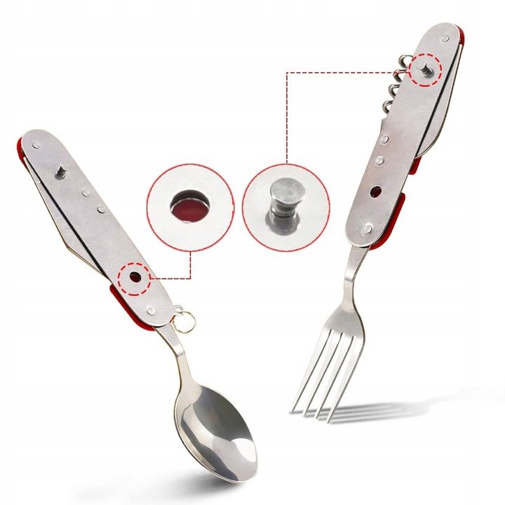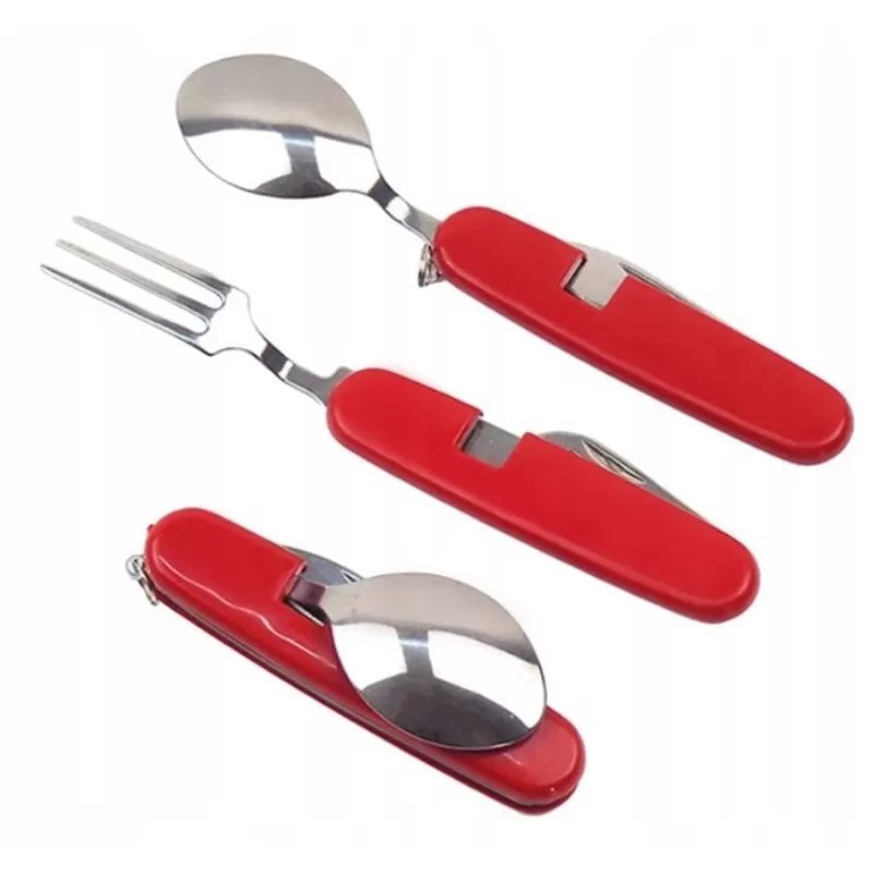 Sada skládacích cestovních příborů - lžíce, vVidlička nůž otvírák.