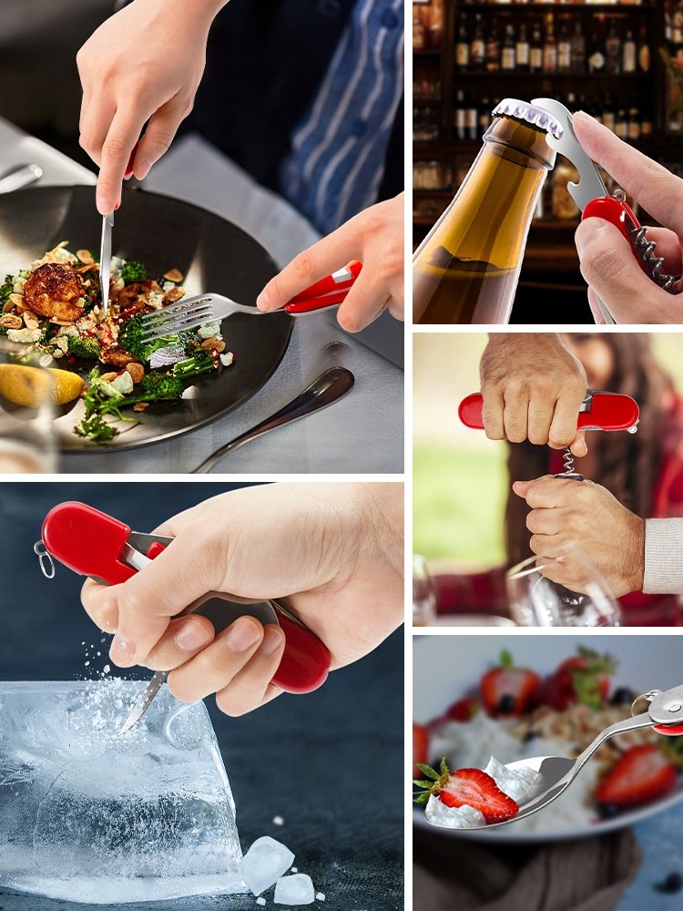 Pronett XJ3191 Multifunkční příbor na kempování, červená