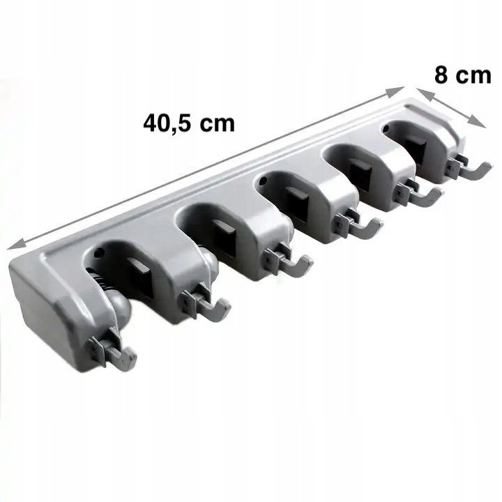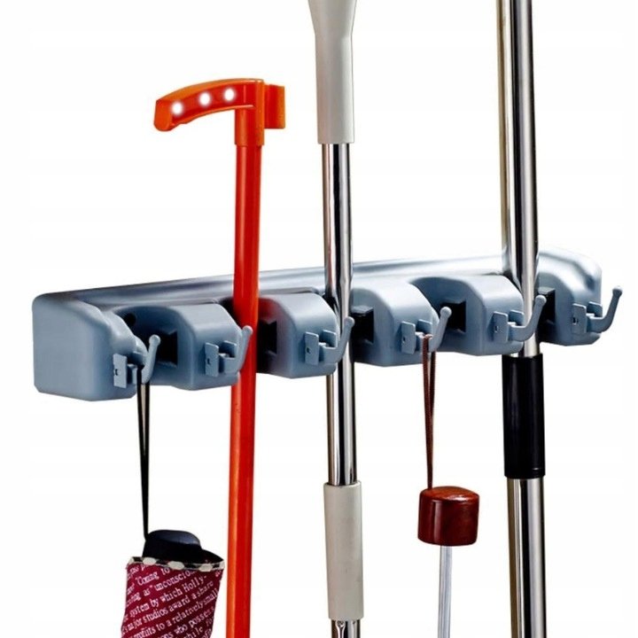Plastový držák úklidových pomůcek zajistí pořádek ve vaší úklidové komoře.