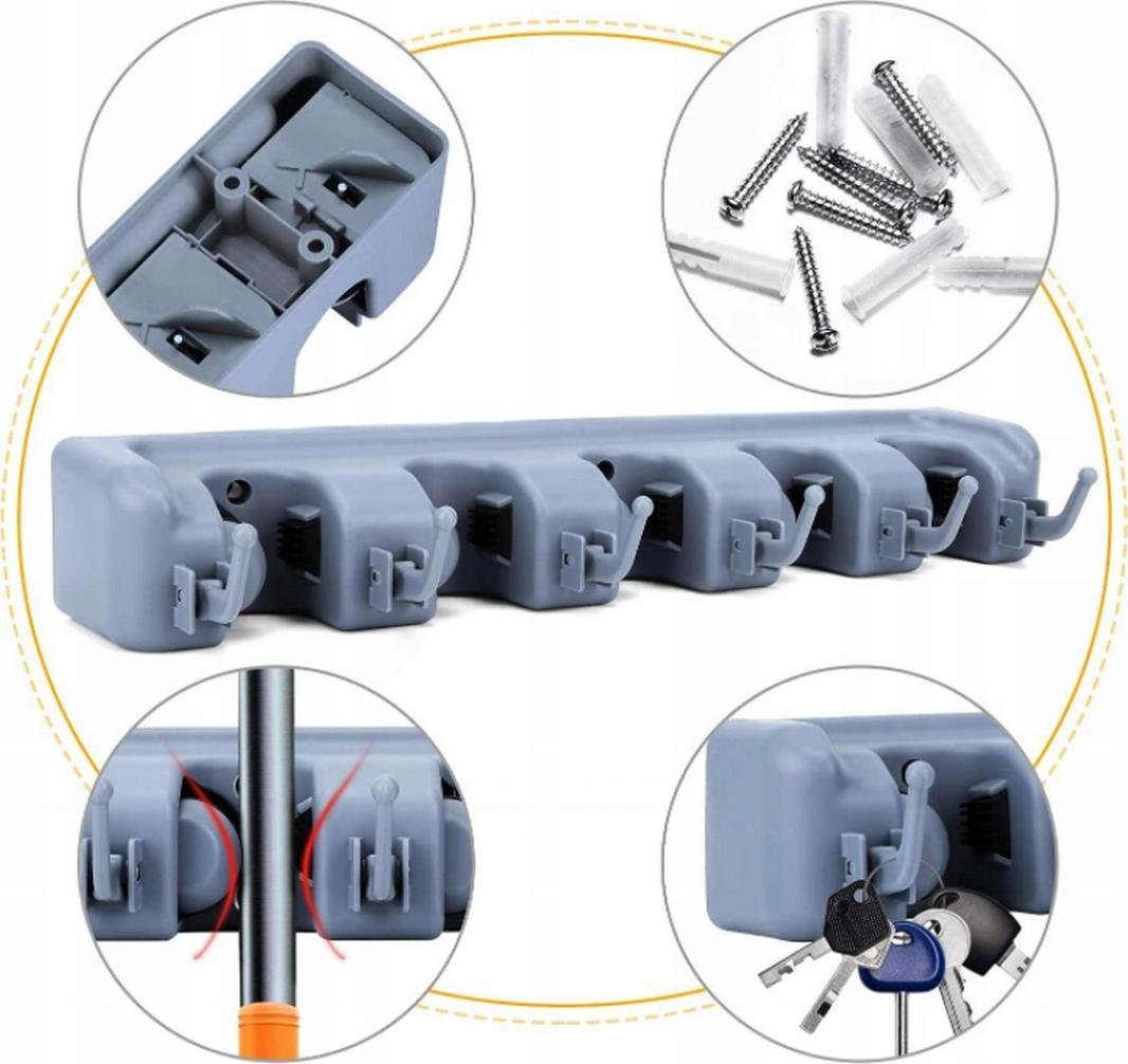 Pronett XJ3364 Držák, věšák na 5 ks úklidového nářadí šedý