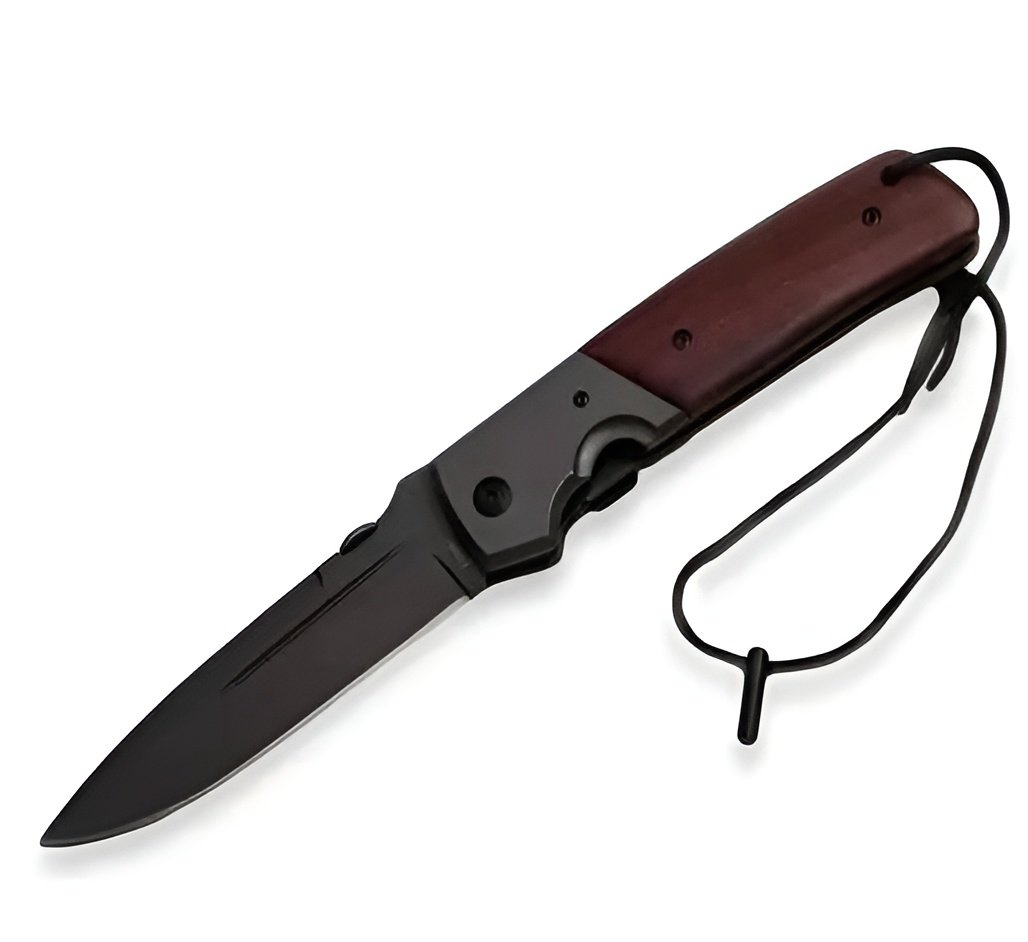 Zavírací nůž s dřevěnou rukojetí vhodný pro outdoorové nadšence, bushcraftery, rybáře apod.