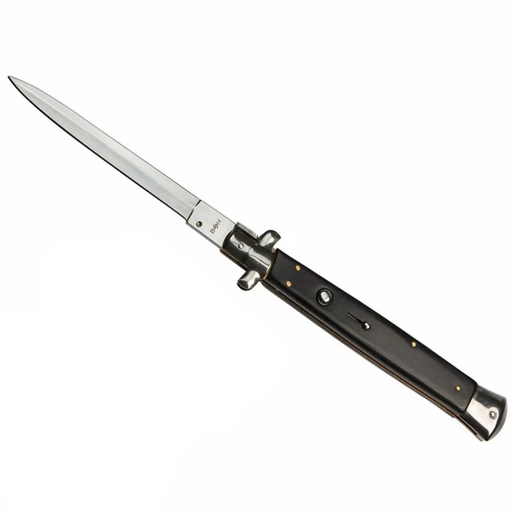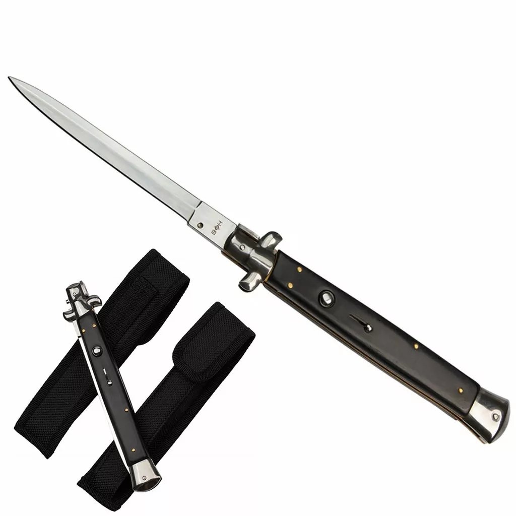 Vystřelovací nůž s pojistkou a úzkou čepelí.