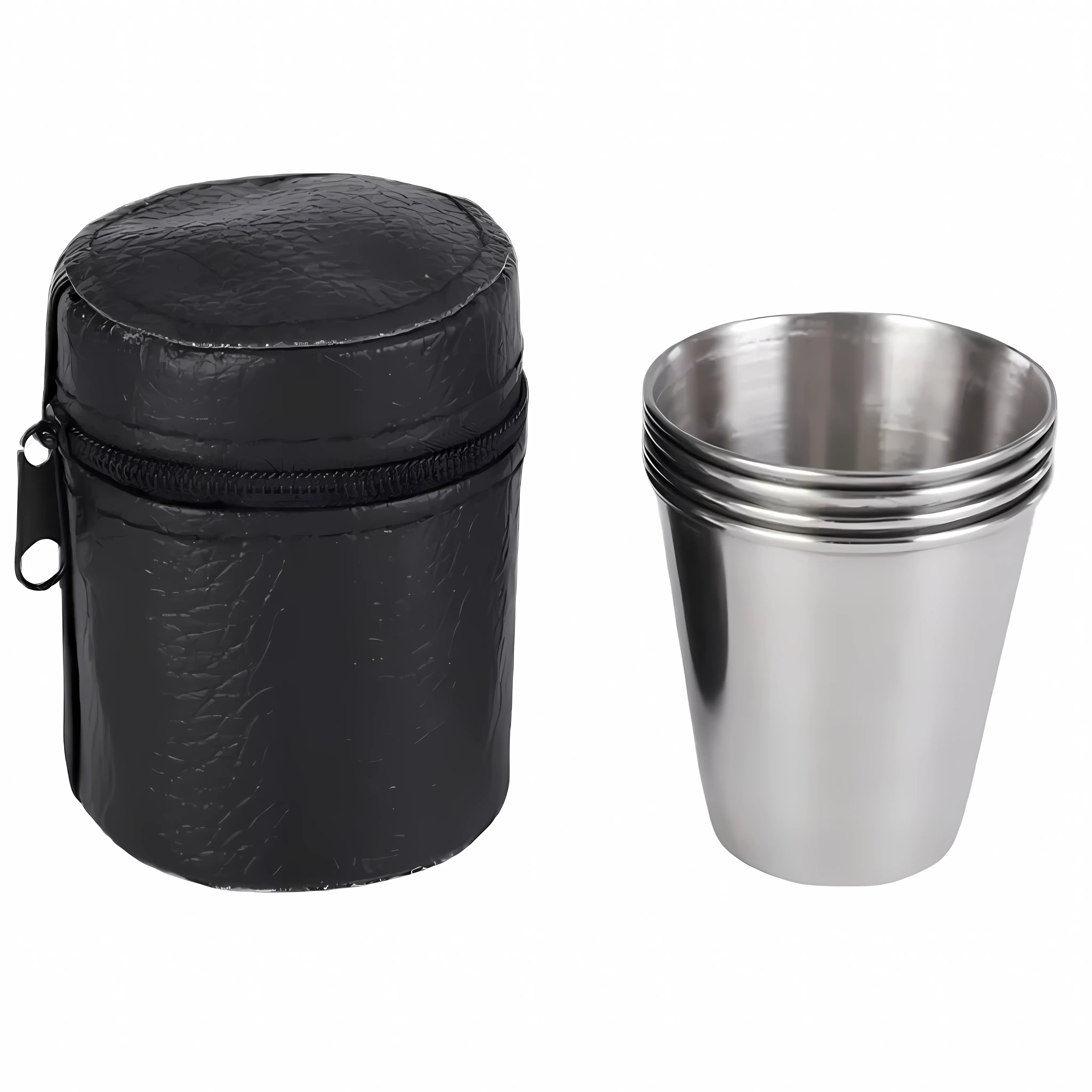 Pronett XJ4854 Nerezové panáky v koženkovém pouzdře 4 x 80 ml