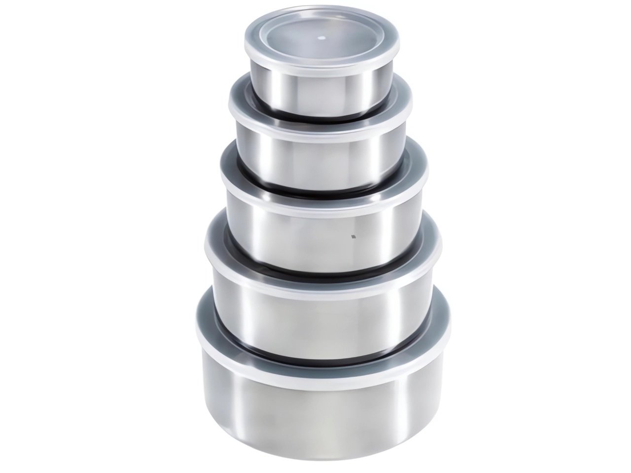 Misky vyrobené z vysoce kvalitní nerezové oceli. Miska s víkem je potřebná pro každou kuchyni.