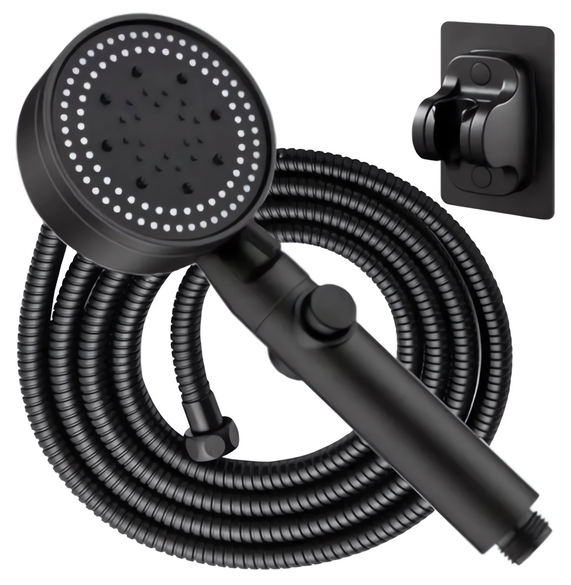 Černá sprchová hlavice. Určeno pro instalaci do standardní sprchové hadice. Sprcha má funkci volby režimu sprchování a funkci STOP, která zastaví proud. Vestavěný ventilátor zvyšuje výkon sprchy bez zvýšení spotřeby vody. Sada obsahuje speciální sprchovou hadici o délce 150 cm a nástěnný držák připevněný samolepicí páskou.