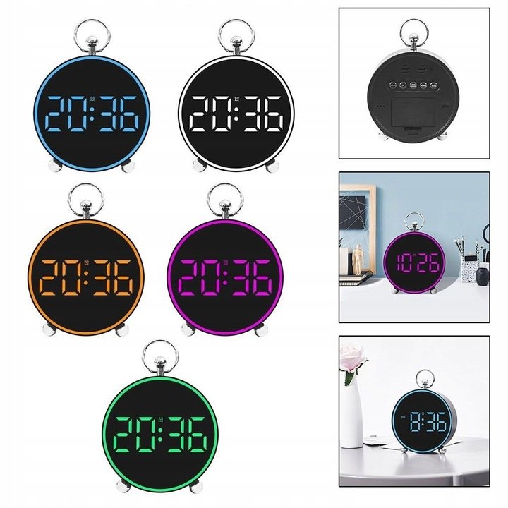 - LED displej: Čitelný a jasný digitální displej zobrazující aktuální čas, teplotu a další funkce.