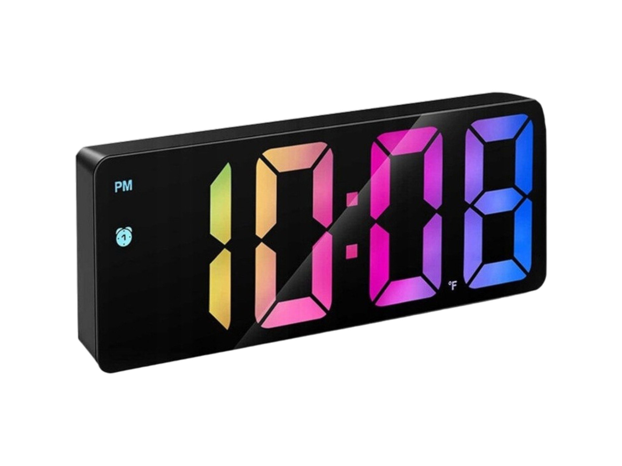Moderní, multifunkční elektronický budík s barevným LED displejem. Ideální do ložnice, kanceláře nebo dětského pokoje.