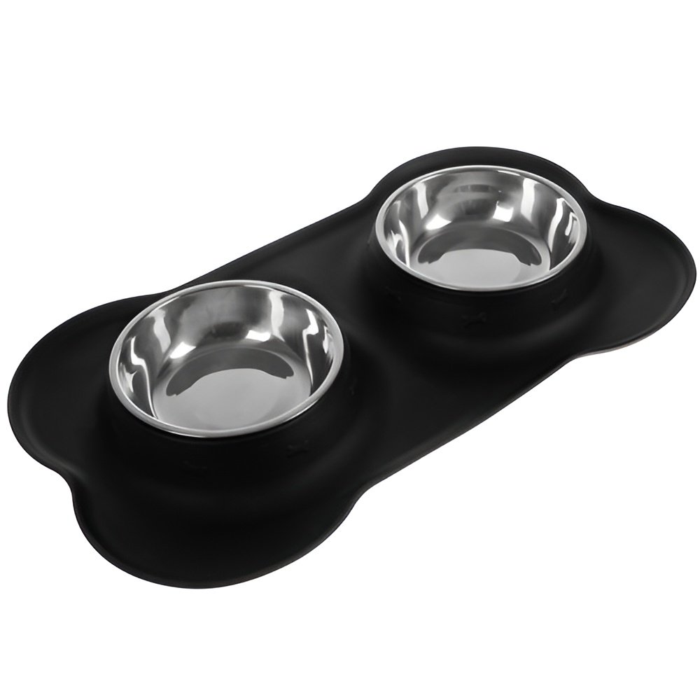 Purlov 21632 Miska pro psy a kočky dvojitá, nerezová, 2 x 350 ml černá