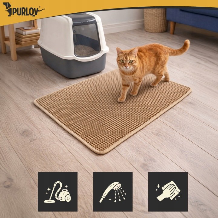 Praktická podložka pod kočičí toaletu o rozměrech 75 × 55 cm pomáhá udržovat čistotu v okolí steliva. Díky dvouvrstvé voštinové konstrukci efektivně zachytává granule z tlapek kočky a zabraňuje jejich roznášení po bytě.