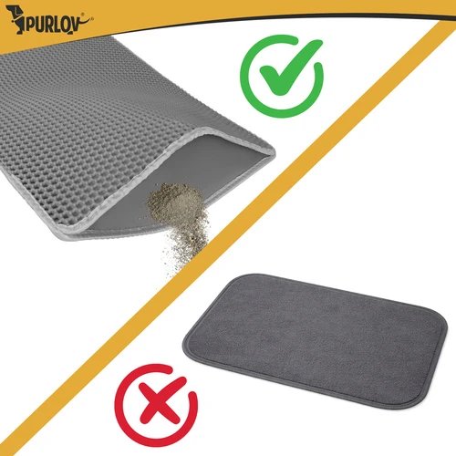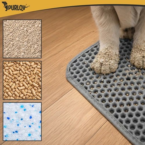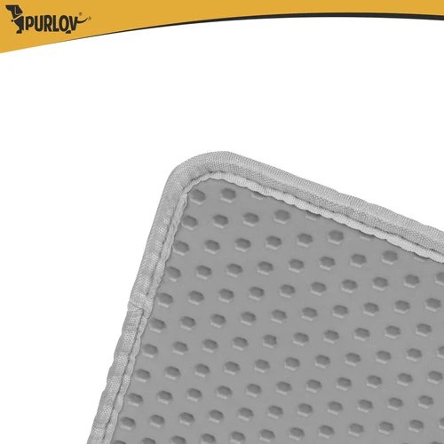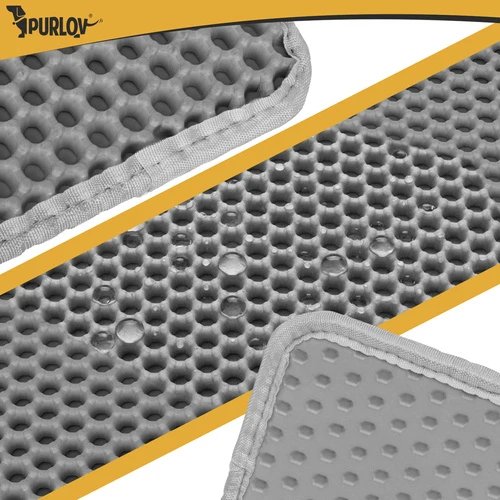 Podložka do kočičí toalety Purlov 75 × 55 cm v šedé barvě pomáhá udržet okolí toalety čisté. Dvouvrstvá konstrukce z EVA pěny s voštinovou (plástvovou) strukturou zachytává granule ze steliva, které se z tlapek kočky jinak roznášejí po podlaze. Díky velké ploše vytváří širší čistící zónu u východu z toalety a omezuje každodenní zametání.