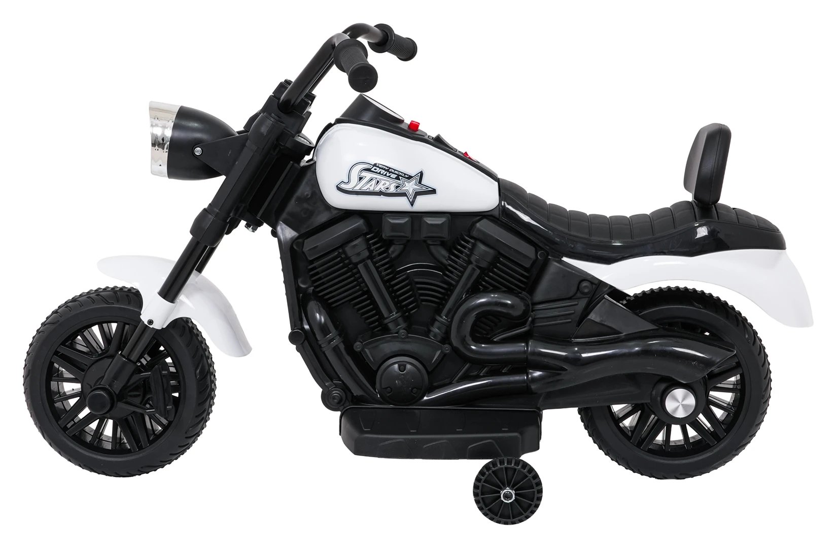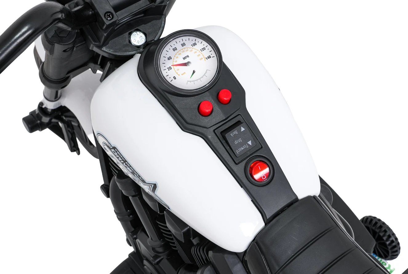 Motor STAR v bílé barvě od značky Ramiz je dětské elektrické vozítko navržené pro zábavnou jízdu s důrazem na jednoduché ovládání a viditelné prvky. O pohon se stará motor o výkonu 30 W napájený akumulátorem 6 V 4,5 Ah. Díky režimu pomalého startu se motorka rozjíždí plynule, což přispívá k pohodlnému zážitku z jízdy. Směr jízdy lze volit vpřed i vzad.