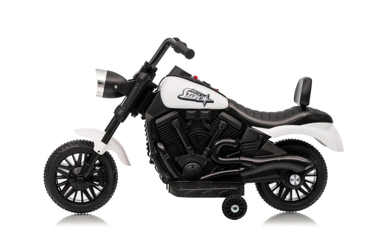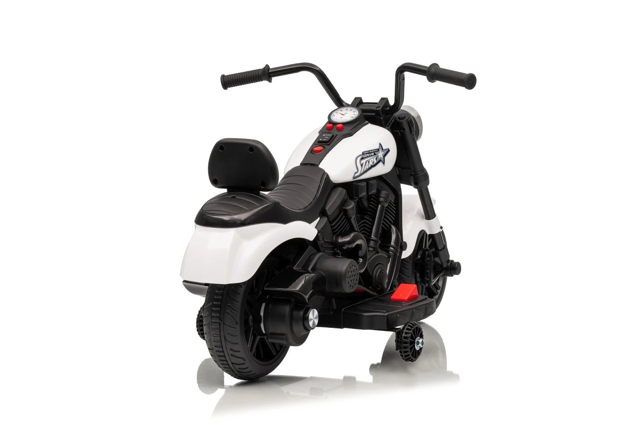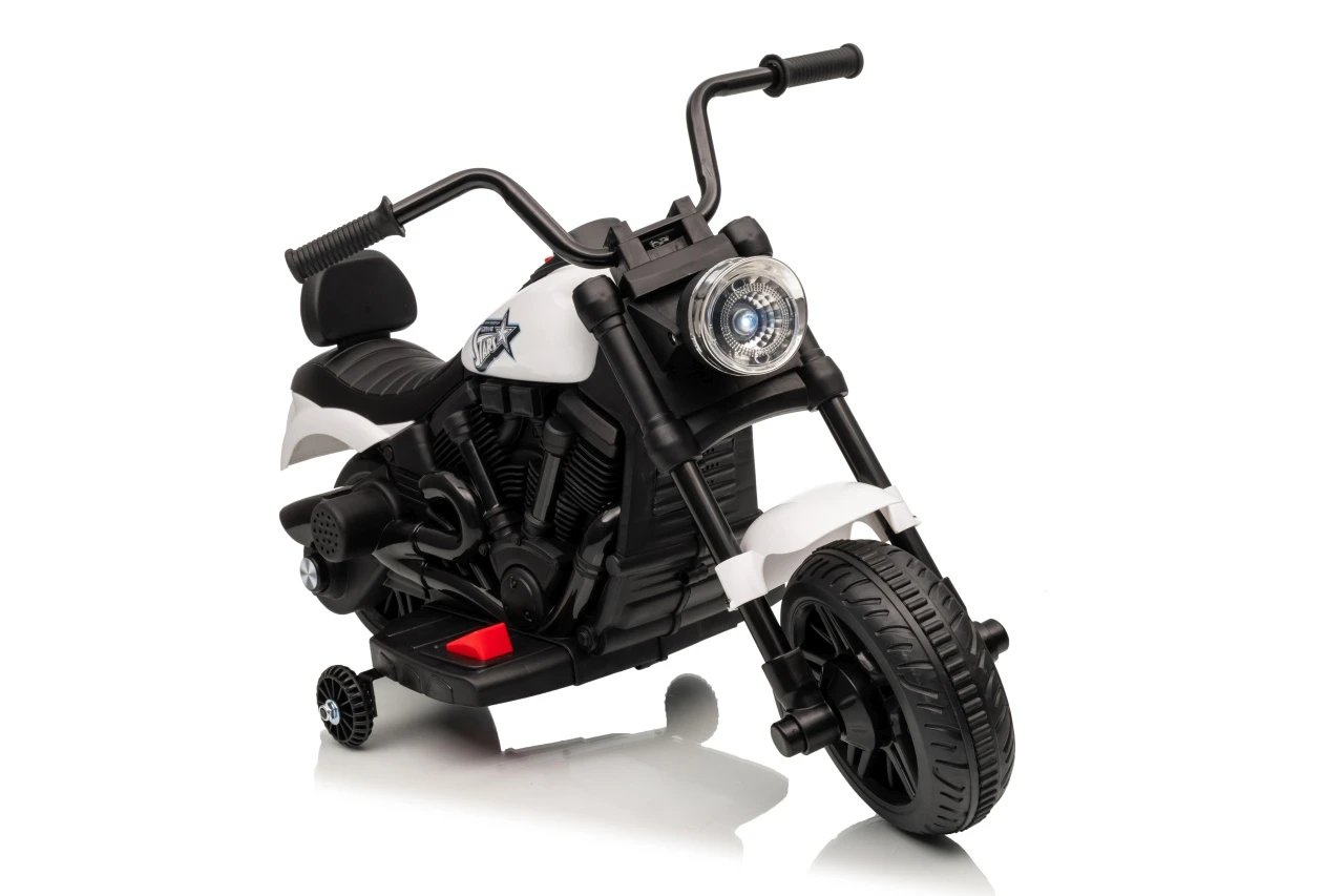 Ramiz PA.XMX-659.BIA Dětská elektrická motorka 30 W, 6V4.5Ah, LED světlo, melodie, boční kolečka, bílá