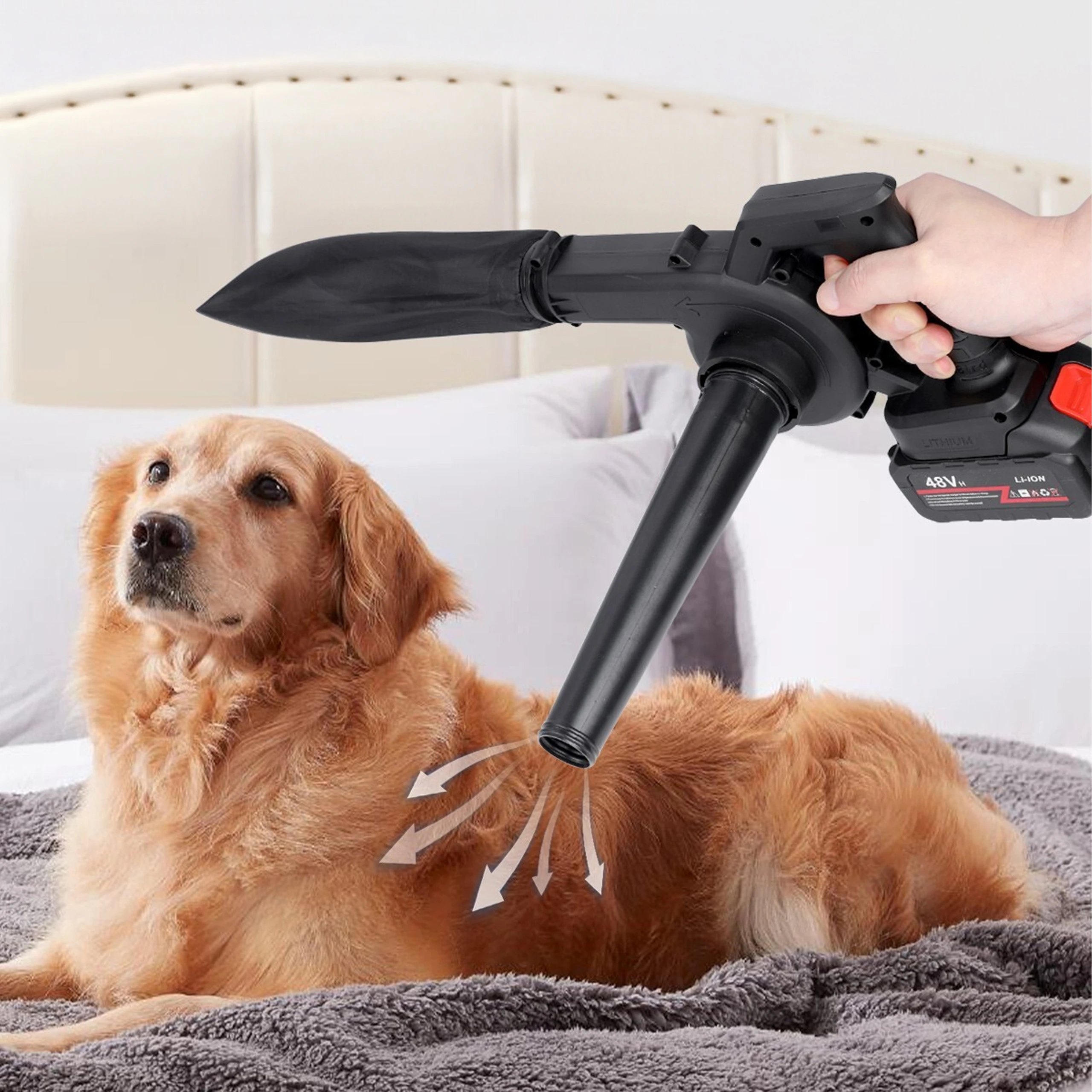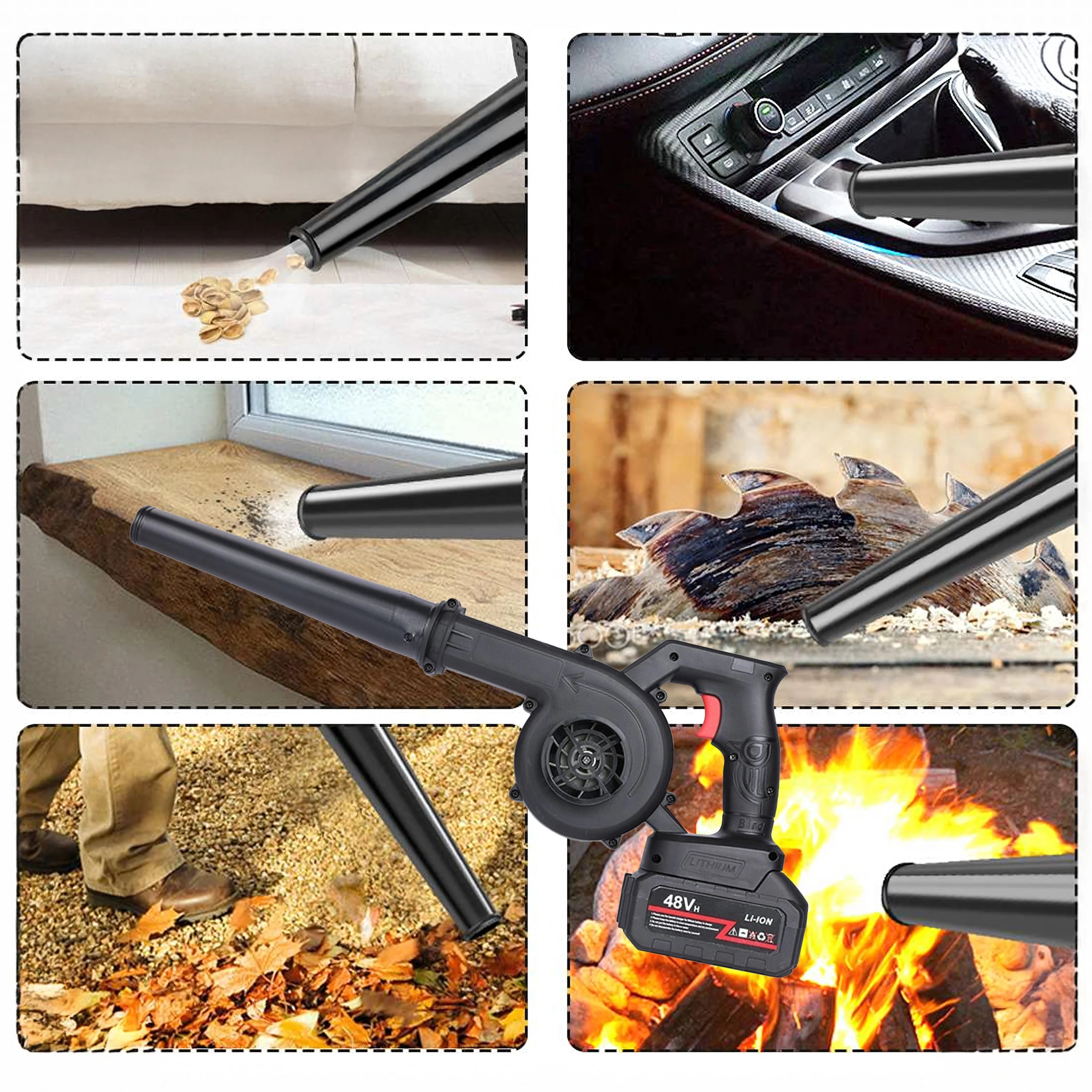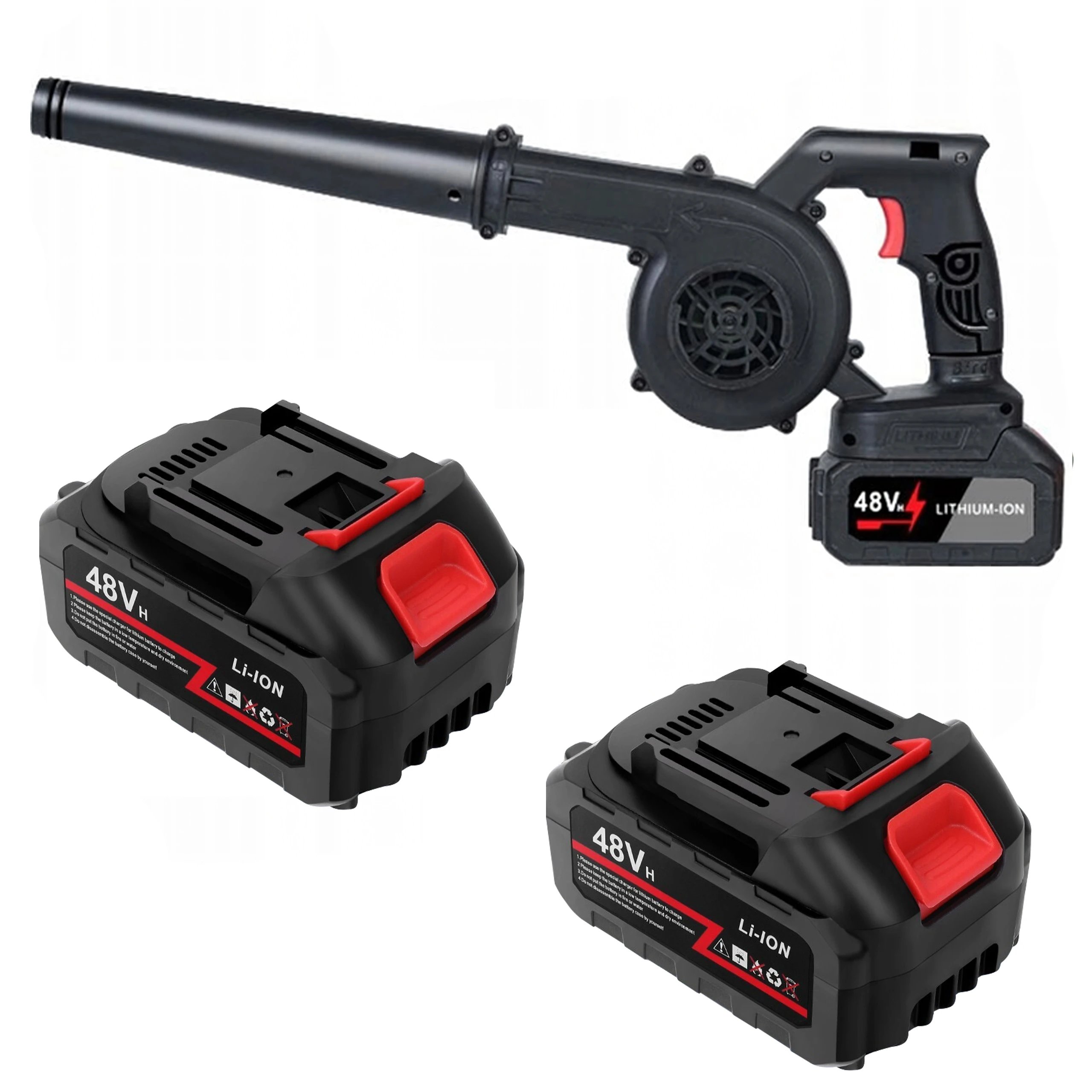 Bezdrátový fukar a vysavač listí 2v1 s regulací výkonu, 48 V, lehký a ergonomický.