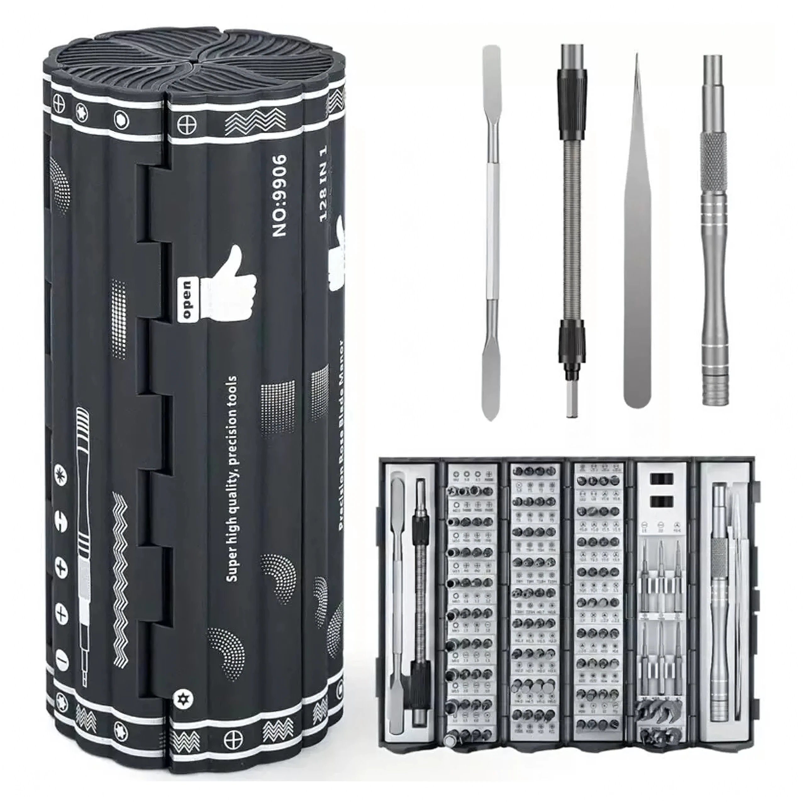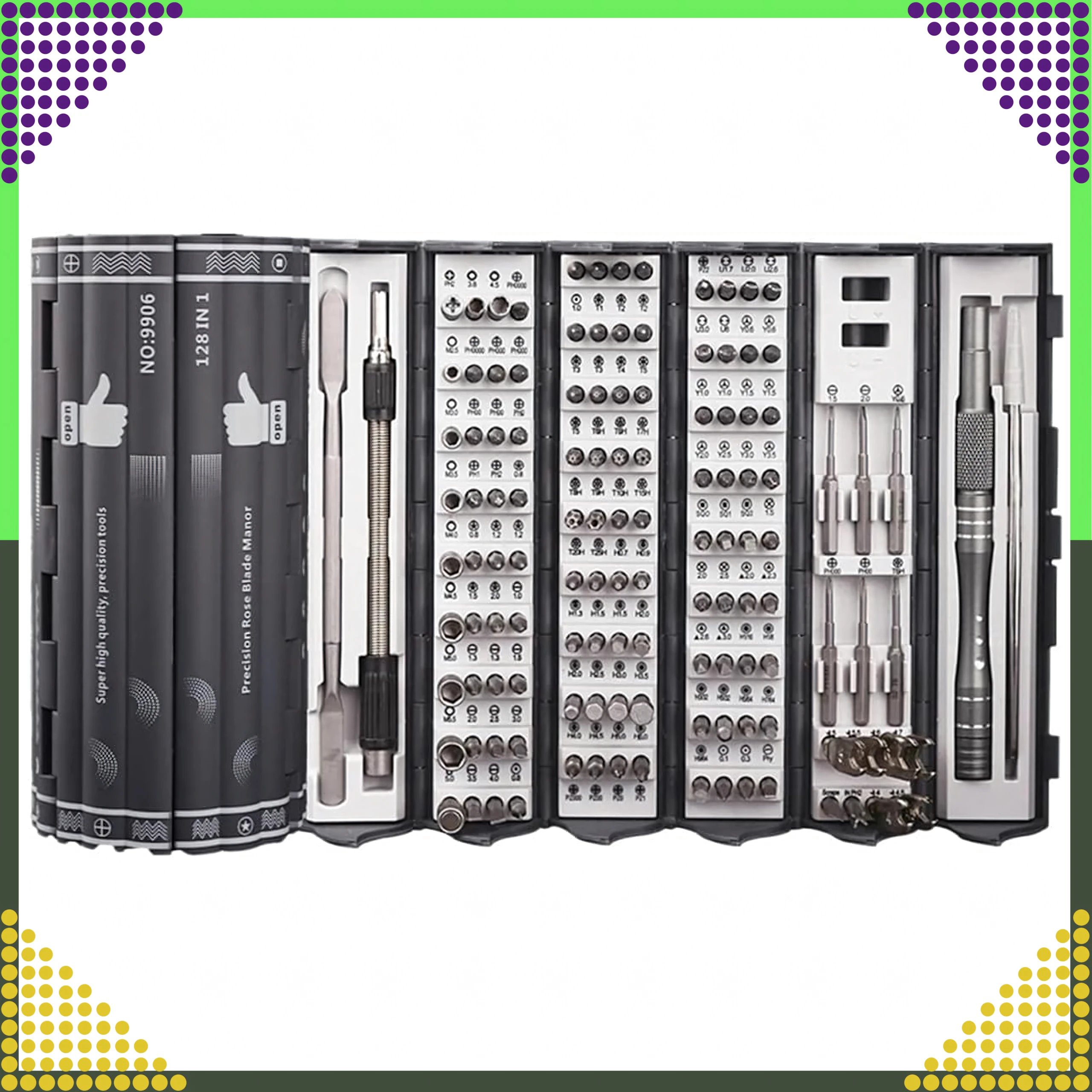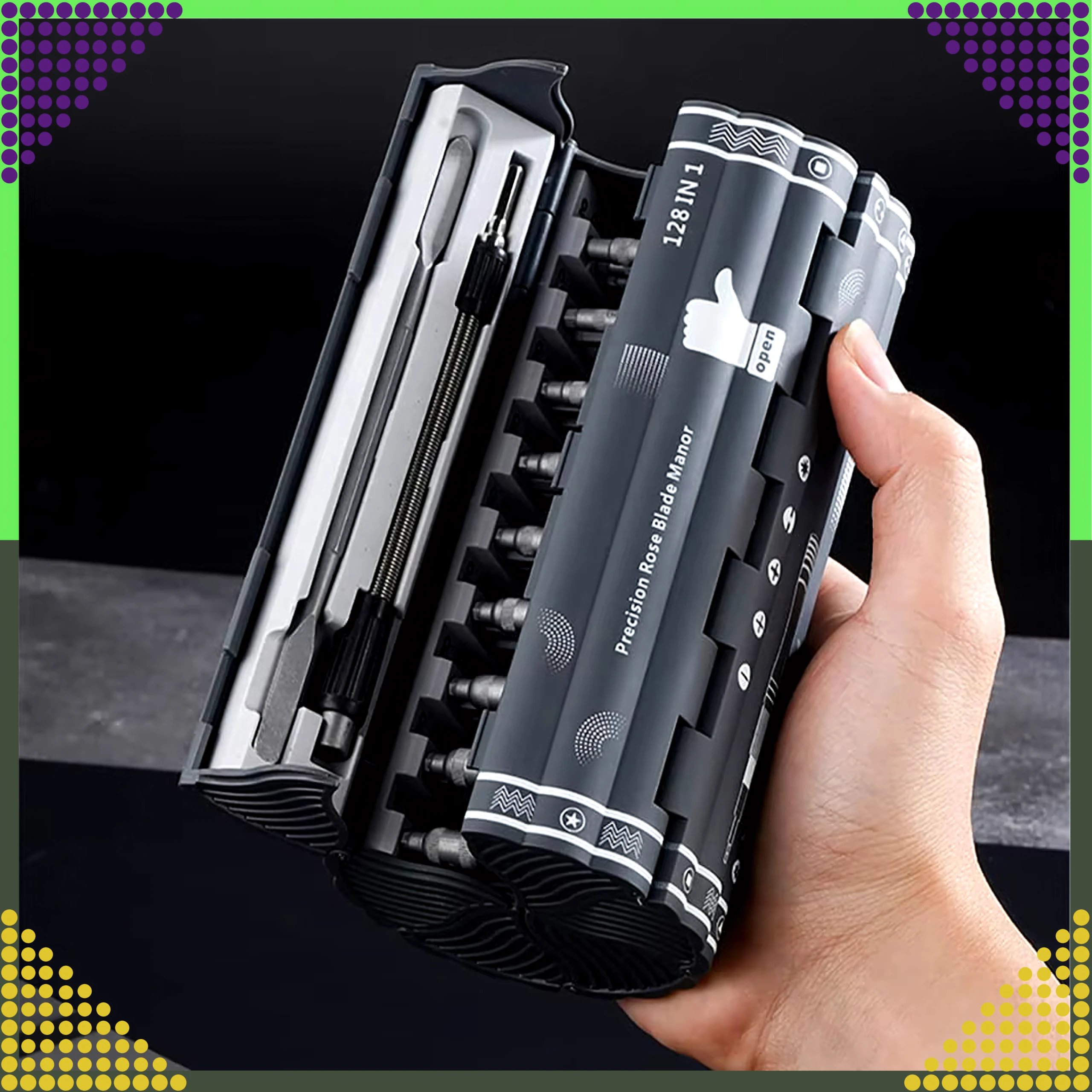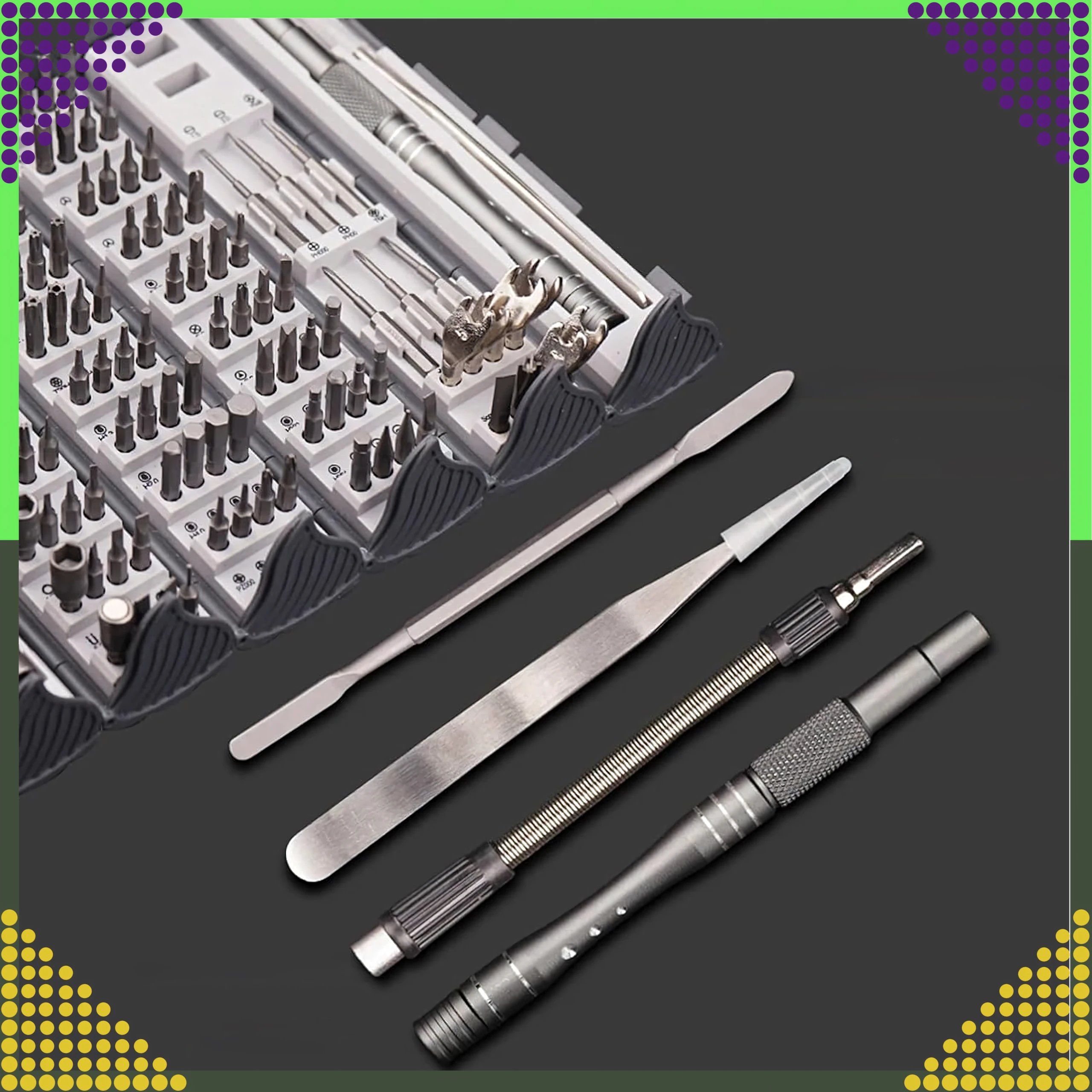 Univerzální 128dílná sada RealG pro precizní práce v elektronice i domácích opravách. Magnetické koncovky zajišťují jistý úchop šroubků a pohodlnou manipulaci i v těsných místech. Díky široké škále přesných bitů a praktickému příslušenství je set vhodný pro telefony, laptopy, hodinky, brýle, fotoaparáty, drobná zařízení a další každodenní servisní úkoly. Vše je přehledně uloženo v plastovém organizéru s futrálem, který usnadňuje skladování i transport.